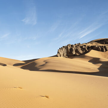 La Tadrart Rughat"la petite montagne rouge" en langue Tamahaq, le Touareg local, fait partie de ce parc et se distingue par la couleur rouge orangée de son sable et de ses roches.