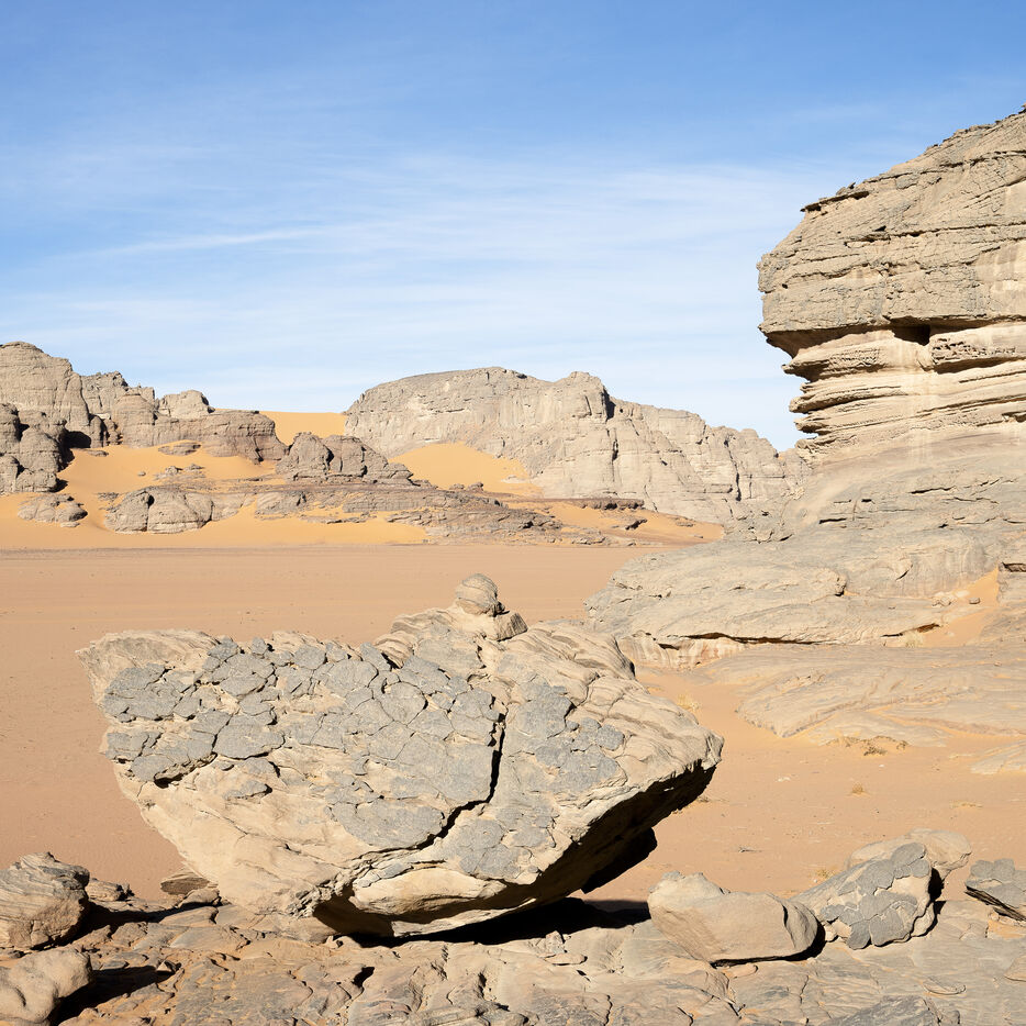 On the edge of the Algerian Sahara, close to the Libyan and Nigerian borders, lies the Tassili Cultural Park, considered the world's largest open-air museum for its countless rock paintings and engravings. It is a Unesco World Heritage site.