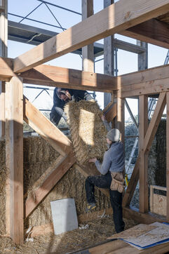 Installée près de Poitiers, la Scop Bois et Paille construit des maison écologiques en ossature bois avec des murs en paille. Ce type de maison très bien isolée, dite "passive", produit théoriquement plus d'énergie qu'elle n'en consomme.