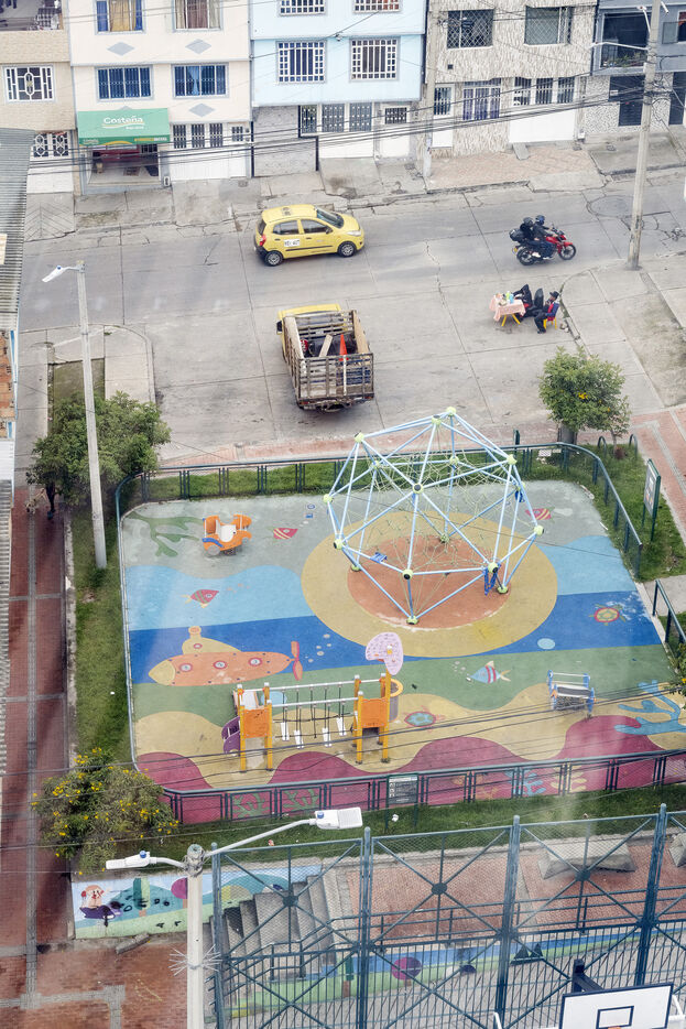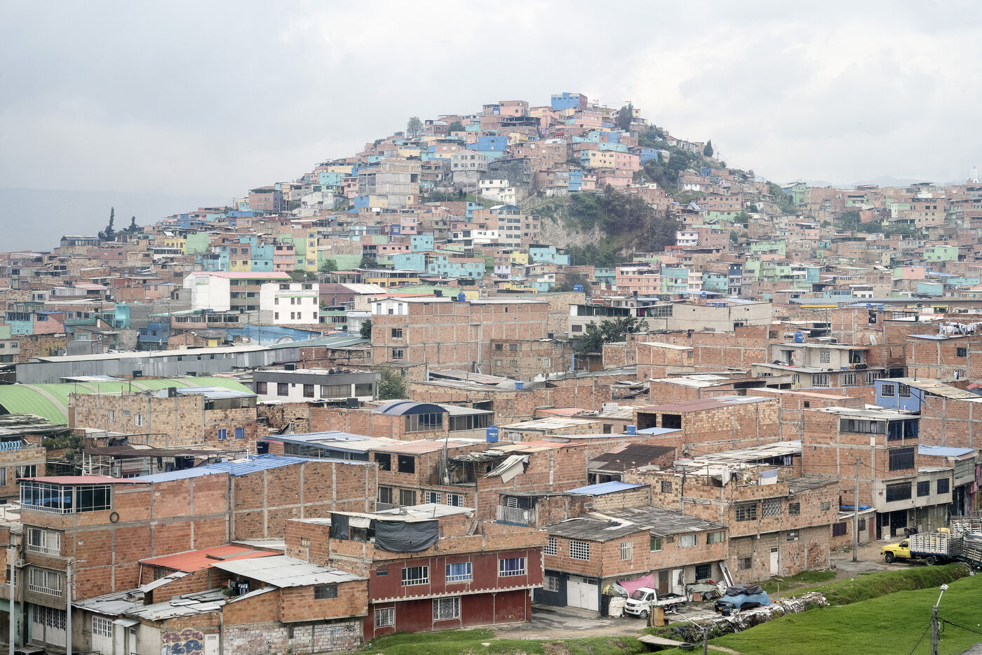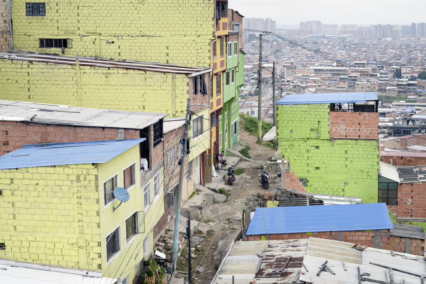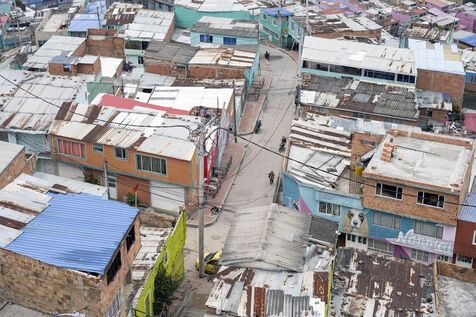 Nestled in a valley in the Andes, Bogotá stretches for some 30 kilometers. On its outskirts, the poorest have built shantytowns that climb the steep slopes of the mountains, of which Ciudad Bolivar is an example, with over 600,000 inhabitants.
