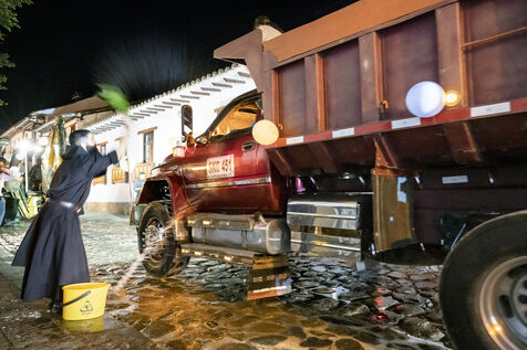 As the patron saint of transporters, at nightfall the town's priests bless the vehicles and their passengers, who parade before them to protect them from accidents and other travel mishaps.