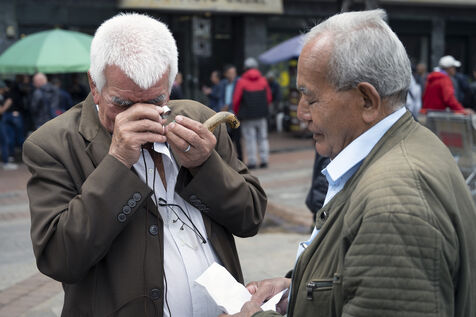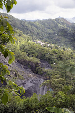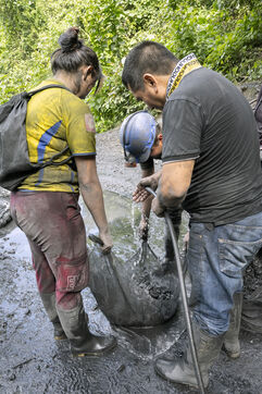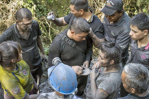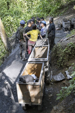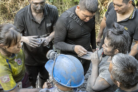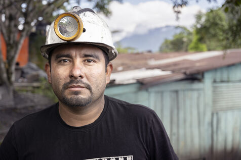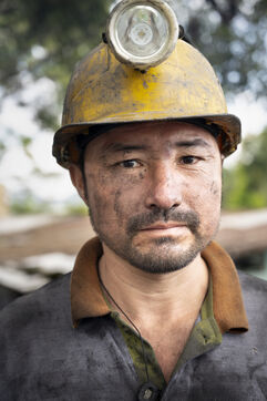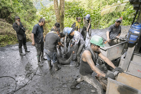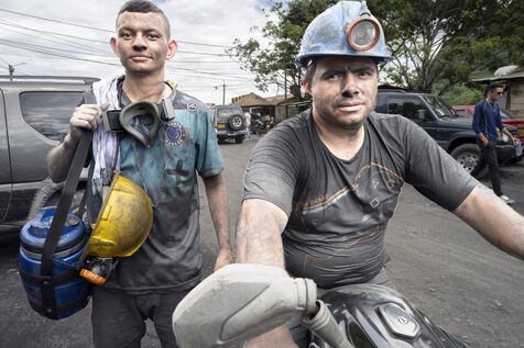 In this tropical zone, 200 kilometres north of Bogotá, it's hot and humid. The temperature in the mines is over 35 degrees and the humidity level is generally 90%. The miners finish their work exhausted, dehydrated and black with dust, which also penetrates deep into their lungs.