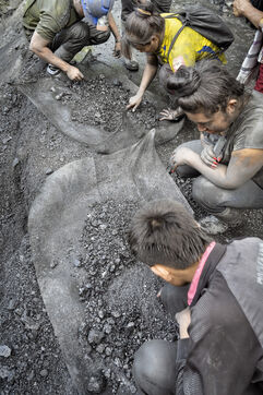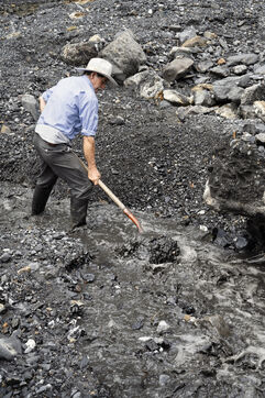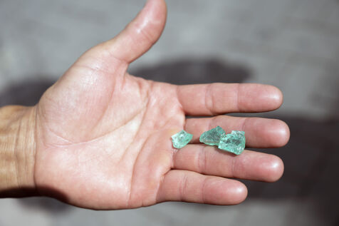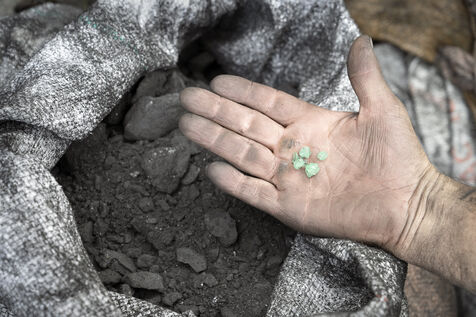 In small-scale operations, work is carried out with pickaxes, shovels and crowbars, sometimes using explosives and jackhammers. Men and women dig deep into the mountains, extracting and hauling away tonnes of black shale in search of the lighter veins of calcite that house the precious stones.