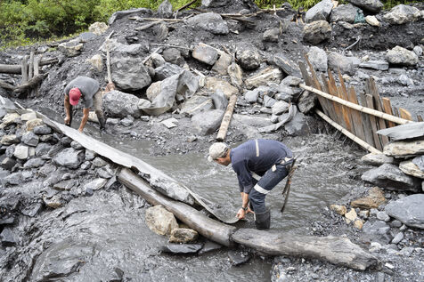 Many guaqueros, the ‘treasure seekers’, work informally, without pay, thus escaping the radar of the State. They can be found in clandestine mines, digging like convicts in river sands or in gravel left over from mining operations.