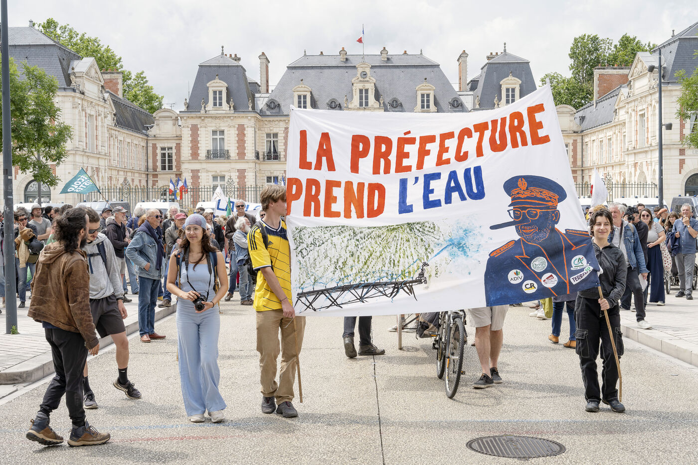 Around 300 demonstrators were present, including Bassines Non Merci, Greenpeace, Extinction Rebellion, the Confédération Paysanne, and political parties such as the Ecologists and La France Insoumise.