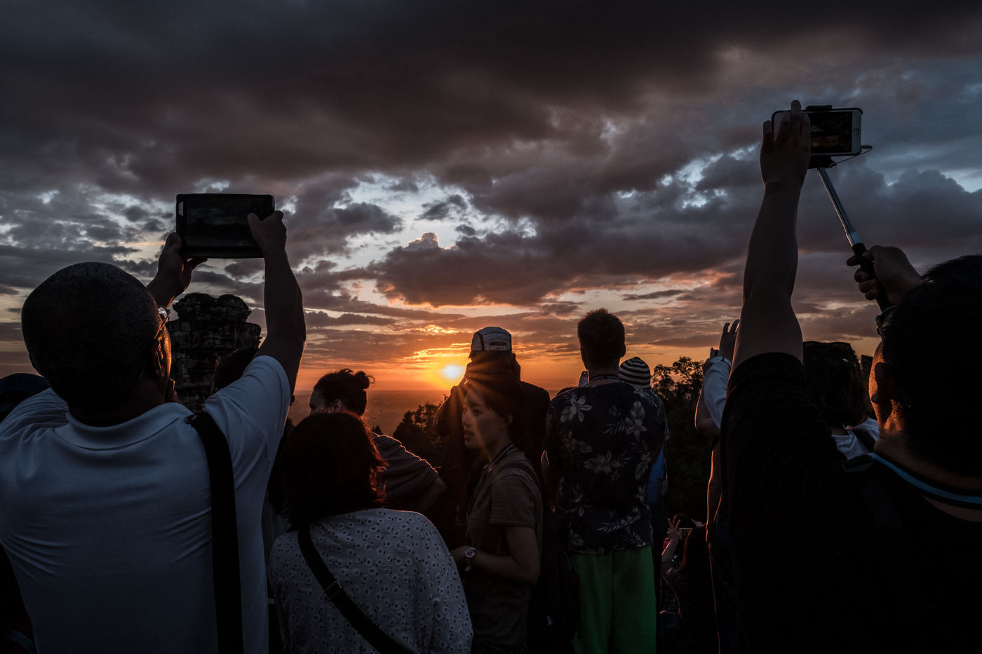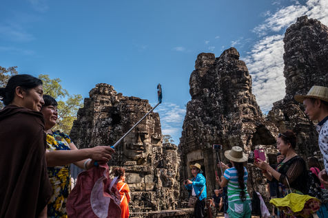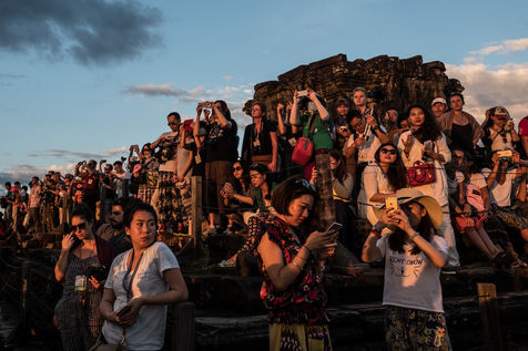 La prolifération des bus et tuk-tuks qui défilent entre les temples a provoqué une hausse majeure de la pollution, tandis que la poésie des lieux a laissé place à une armée de bâtons à selfies en quête d'un coucher de soleil.