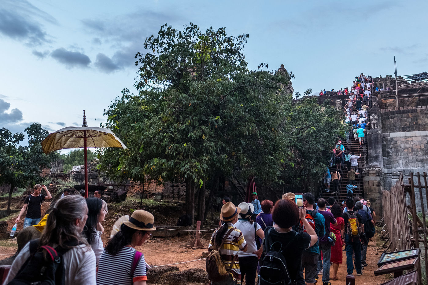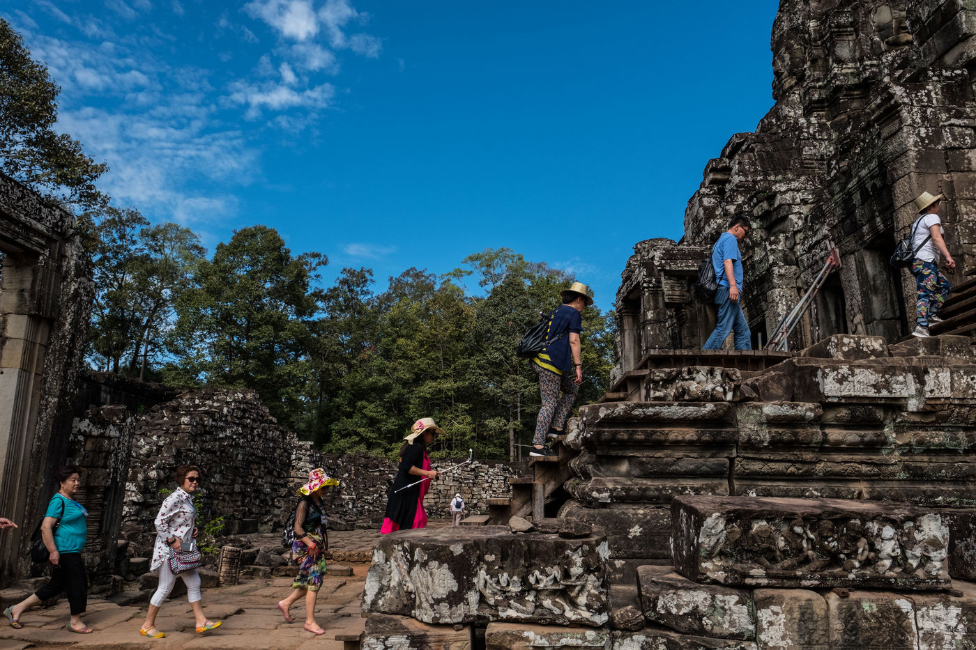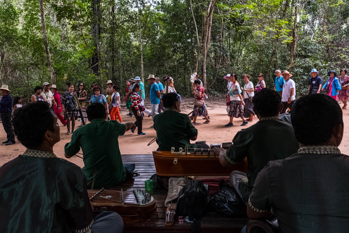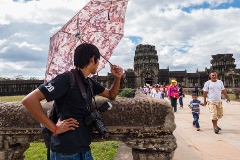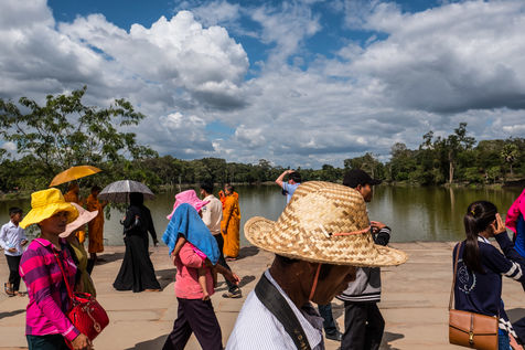 À cette foule s'ajoutent les Cambodgiens qui tentent de profiter de cette manne financière en vendant des boissons et en dirigeant les visiteurs vers les magasins de souvenirs. Leurs enfants, plutôt que d'être à l'école, sont mis également à contribution et vendent cartes postales et autres babioles.