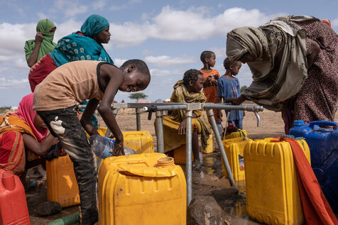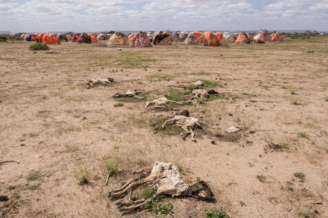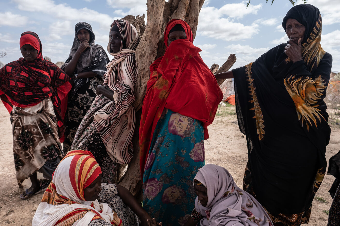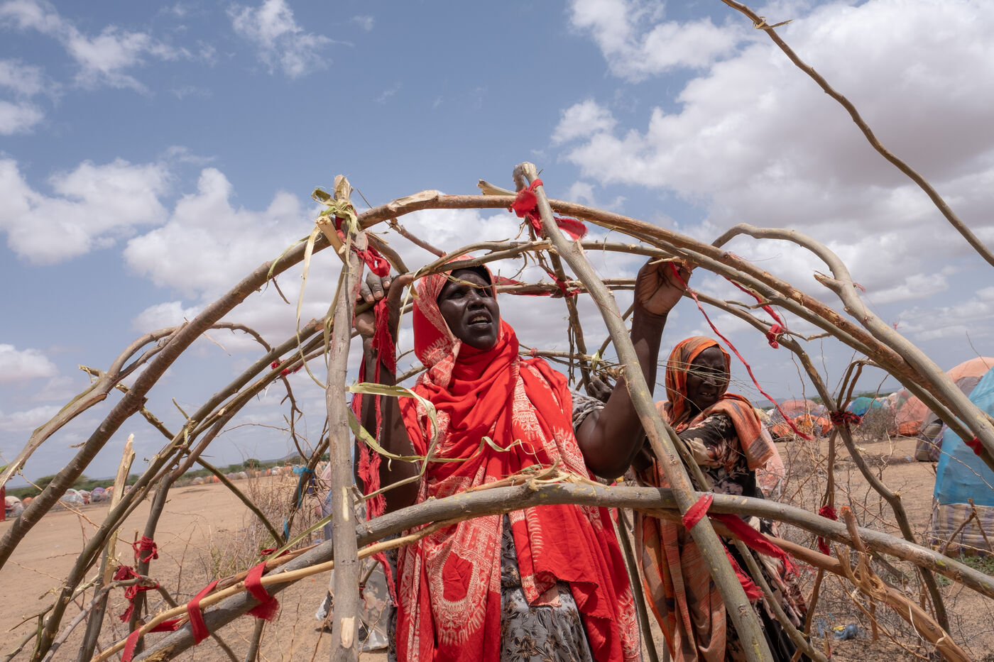 Les communautés nomades de la Corne africaine ont vu ces dernières années un changement climatique de plus en plus violent et consécutif affectant complètement leur mode de vie sociale, économique et sanitaire. La sécheresse sévissant en 2022 est considérée comme la plus violente depuis 30 ans, elle vient porter un coup de grâce à ceux qui possédaient encore leurs animaux. Le pastoralisme nomade repose économiquement et socialement sur le nombre de chèvres, de vaches ou de chameaux que les familles possèdent, or la sécheresse vient de tuer plus de 3,5 millions d?animaux en 2022 par le manque de verdure et d'eau rendant la vie nomade impossible. Depuis plusieurs années, les camps de réfugiés climatiques augmentent et s'agrandissent. Le fardeau repose principalement sur les femmes qui portent cette crise à bout de bras. Beaucoup d?hommes abandonnent en effet leurs familles par honte et déshonneur n?ayant plus de bétail (vital pour la vie nomade). Les femmes se retrouvent donc isolées et viennent rejoindre les milliers de familles des camps environnant les villes. Elles doivent faire face au manque de nourriture et des eaux du sol contaminées. L?aide internationale étant également fragilisée par la guerre en Ukraine. Depuis plusieurs années, la Somalie, l?Éthiopie et le nord du Kenya voient s'éteindre la vie nomade brutalement et dans des conditions humanitaires violentes en conséquence directes du changement climatique mondial.