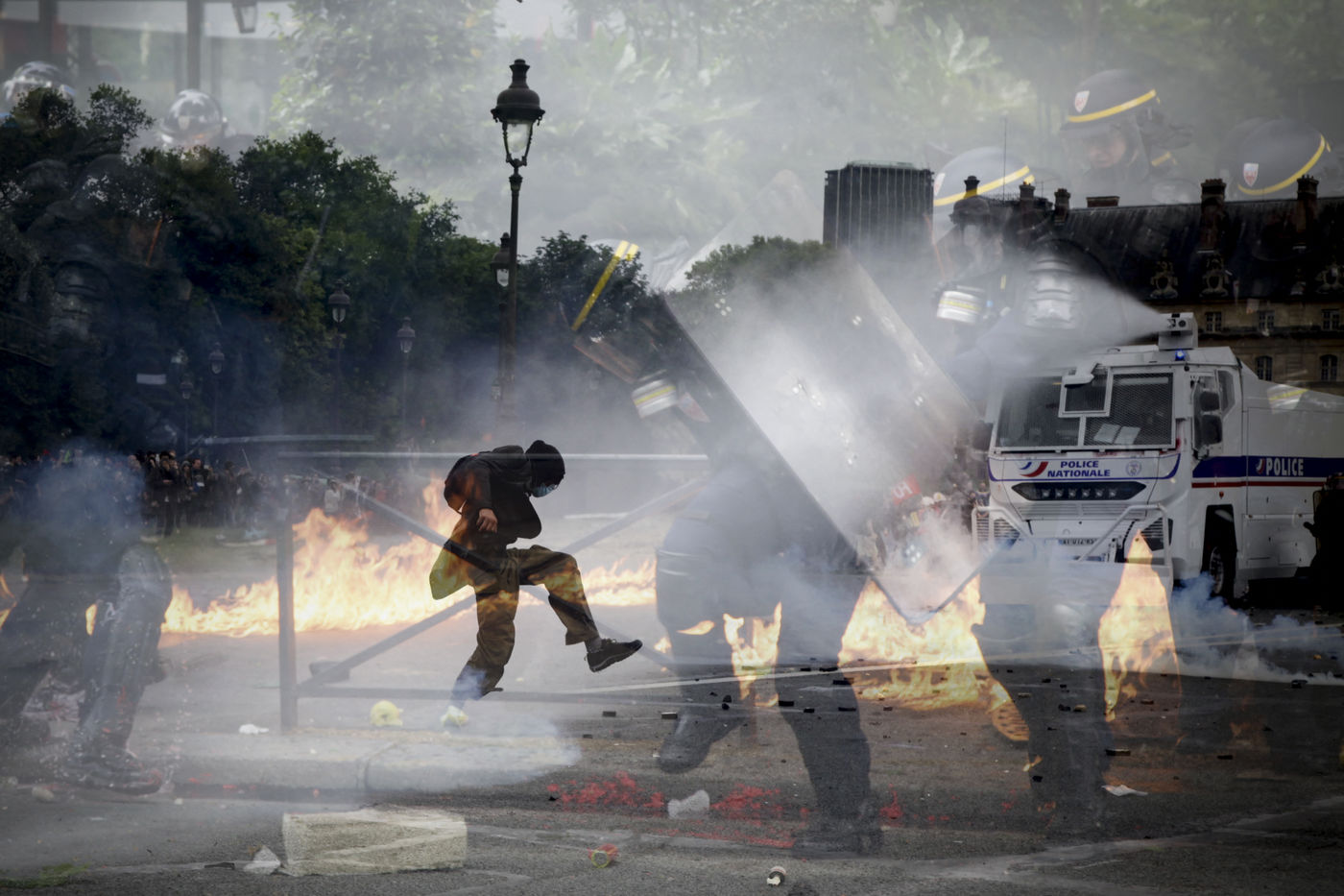 The political and social context in France is increasingly contradictory and tense. Ideas mix and contradict each other. For or against. We advance and regress. This series tends to represent this fuzzy and destructive context where finally citizens and CRS are the pawns of an endless board games.
