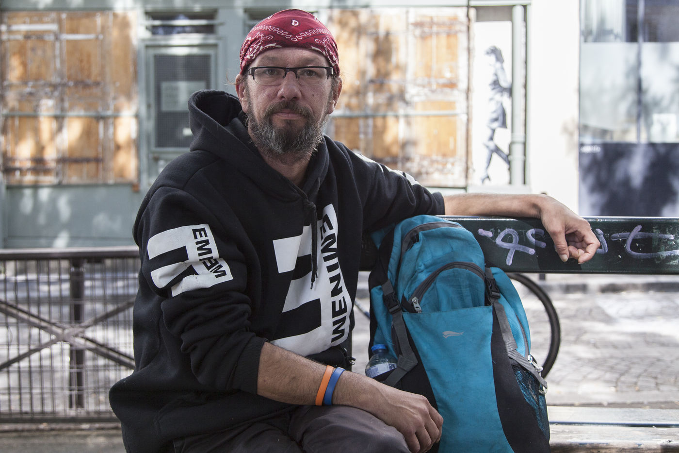 Christian Page, homeless for 3 years, got noticed thanks to a tweet against the Paris City Hall. Even though he's now off the streets, he still keeps in touch with the homeless and the associations that helped him. Paris, August 2019.