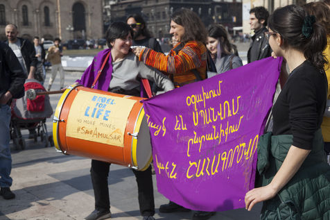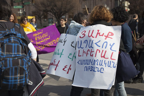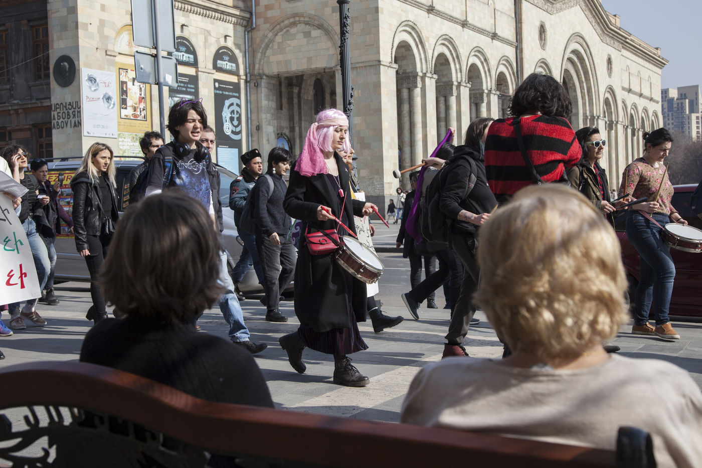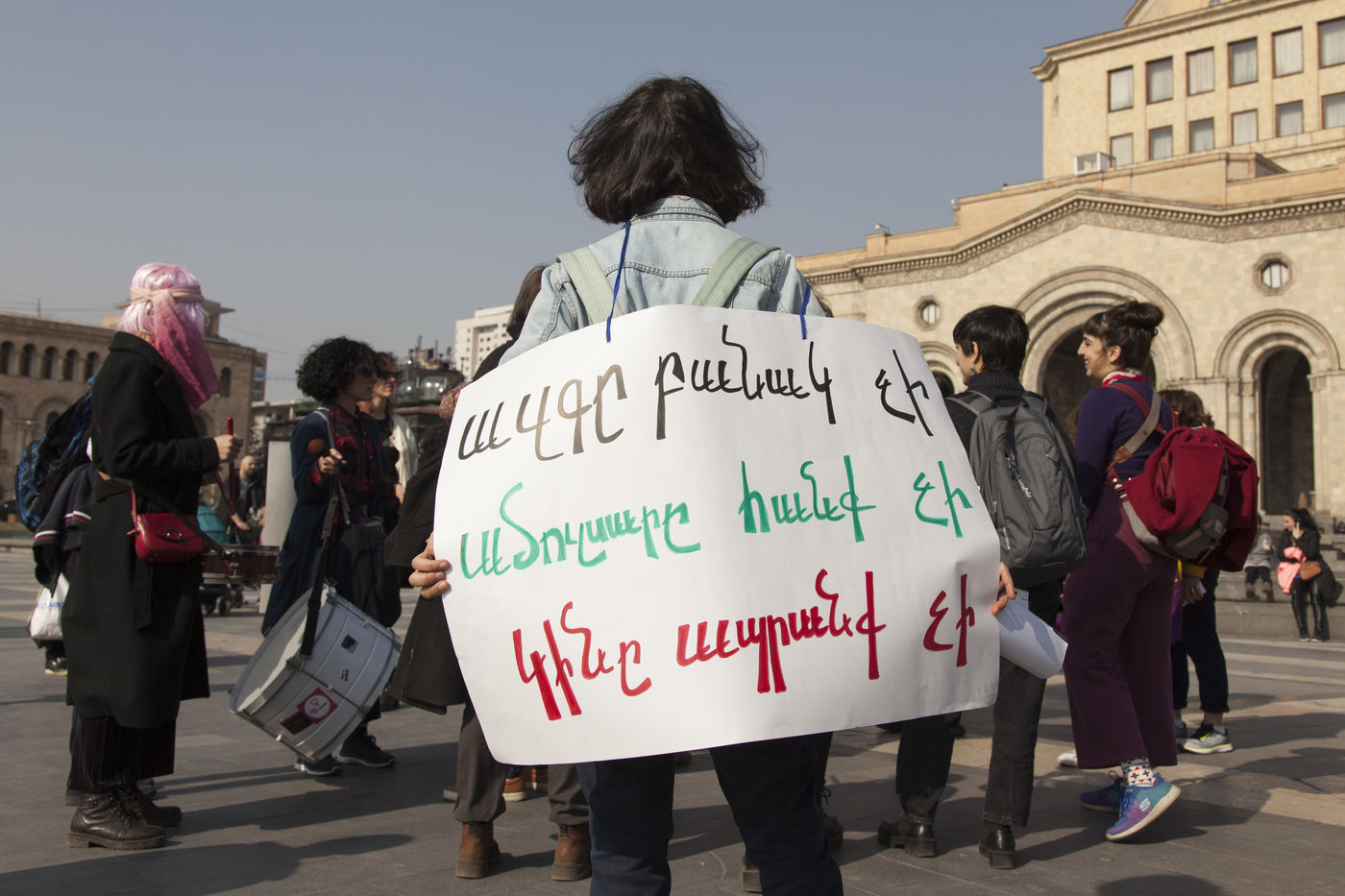About thirty men and women gathered in front of the statue of Isahakaryan in the early afternoon of Sunday 8 March.