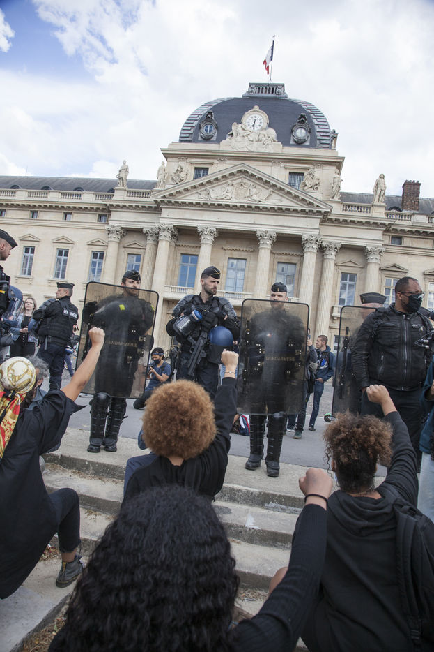 Rassemblement devant l'école militaire. Paris, 06 juin 2020.
