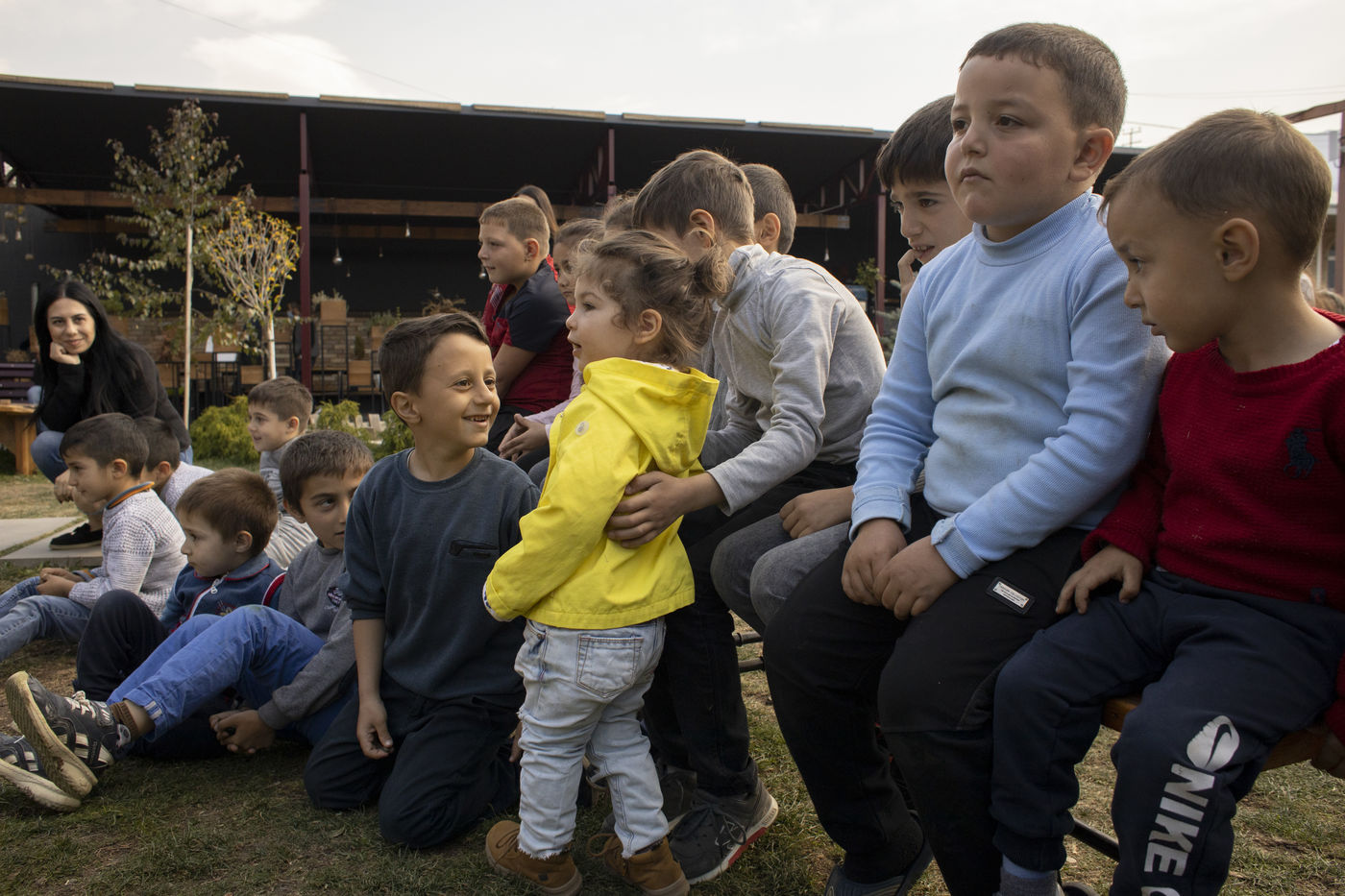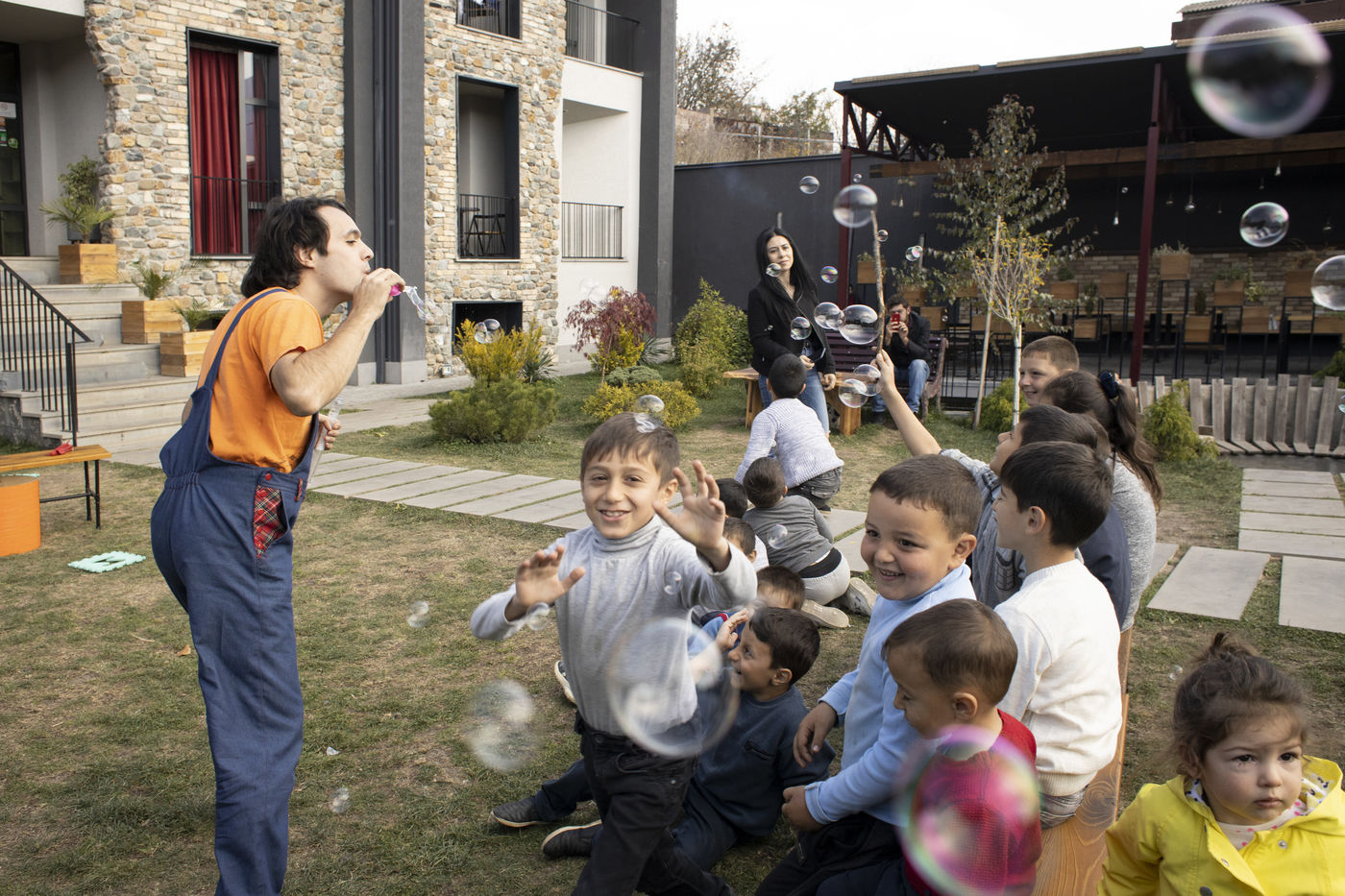 Afin d'aider les enfants réfugiés d'Artsakh, une compagnie de théâtre indépendant de Yerevan est venu pour offrir quelques heures de rires. Arrivés vers midi, trois acteurs ont raconté à leur manière une histoire. Bulles de savon et boulettes en papier ont permis au jeune public d'oublier pendant quelques instants la guerre qui fait rage non loin d'ici.