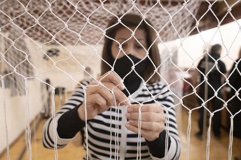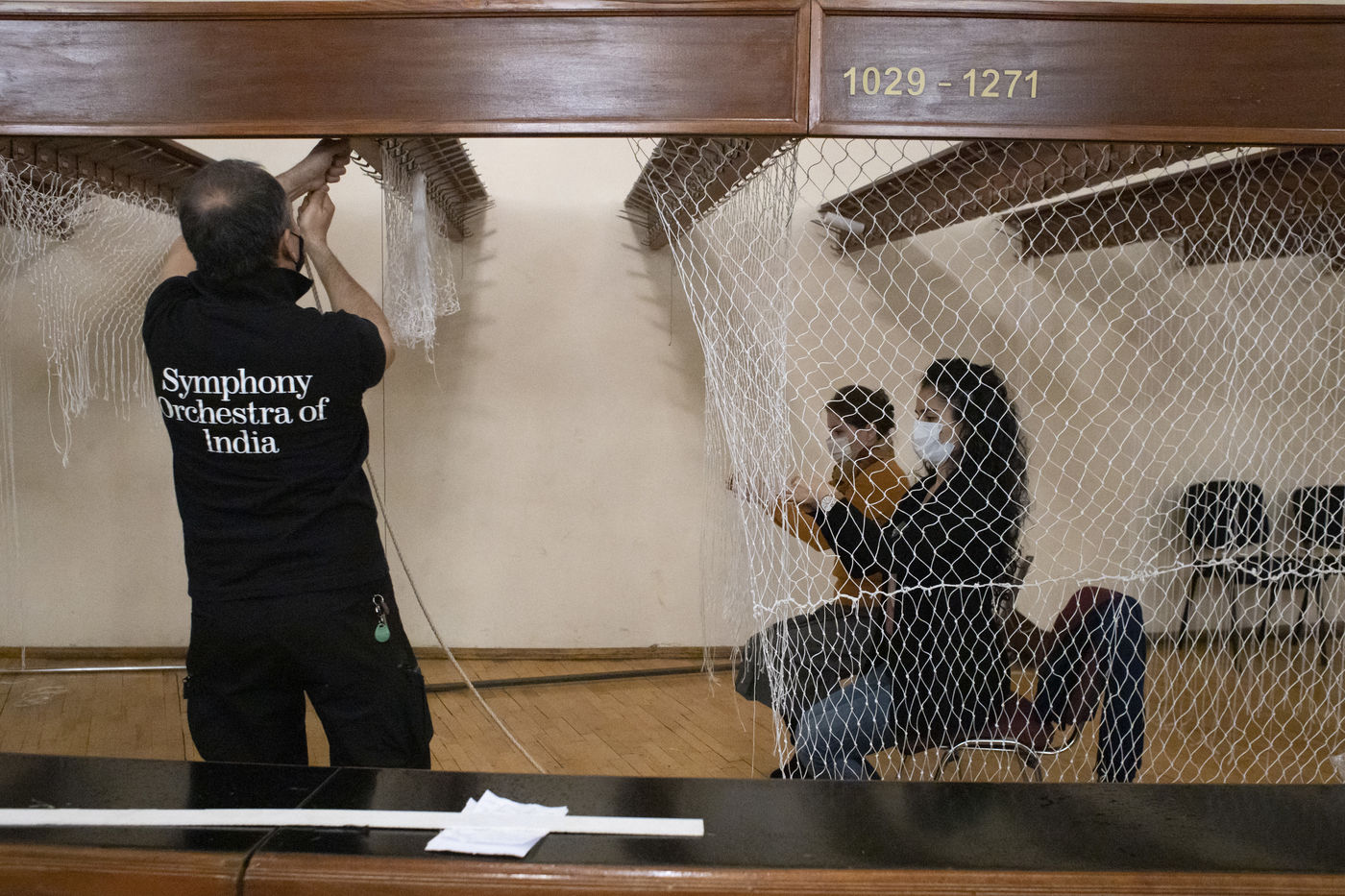 In order to support the Armenian army opposing Azerbaijan's invasion of Artsakh, members of the Yerevan Philharmonic Orchestra weave camouflage nets in the dressing rooms of the Opera House. Yerevan, 06 November 2020.
