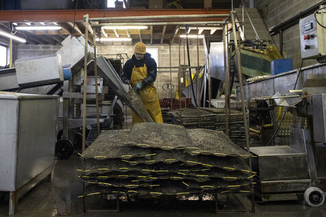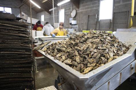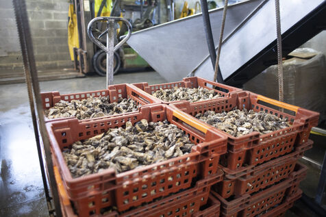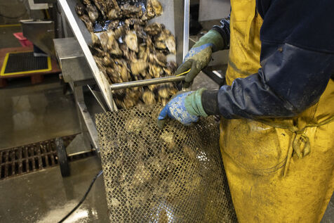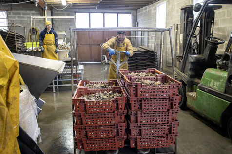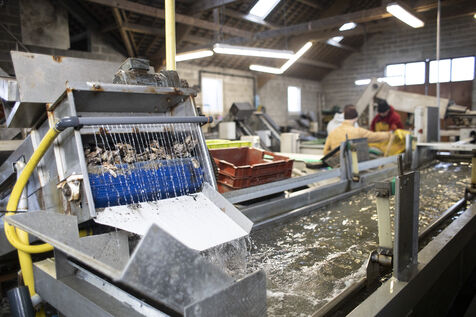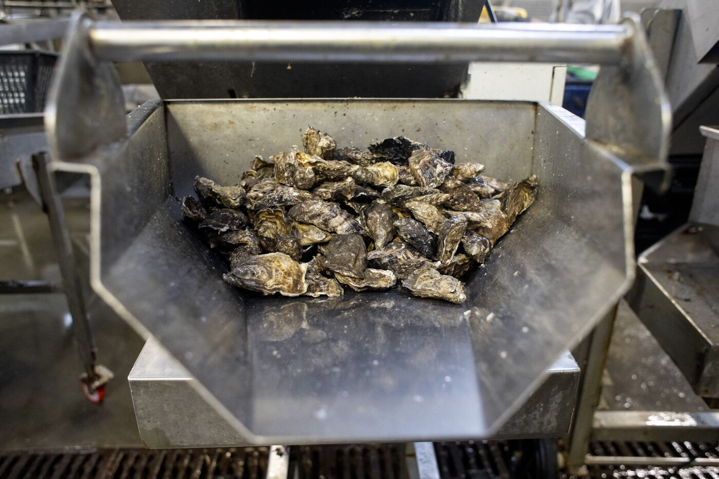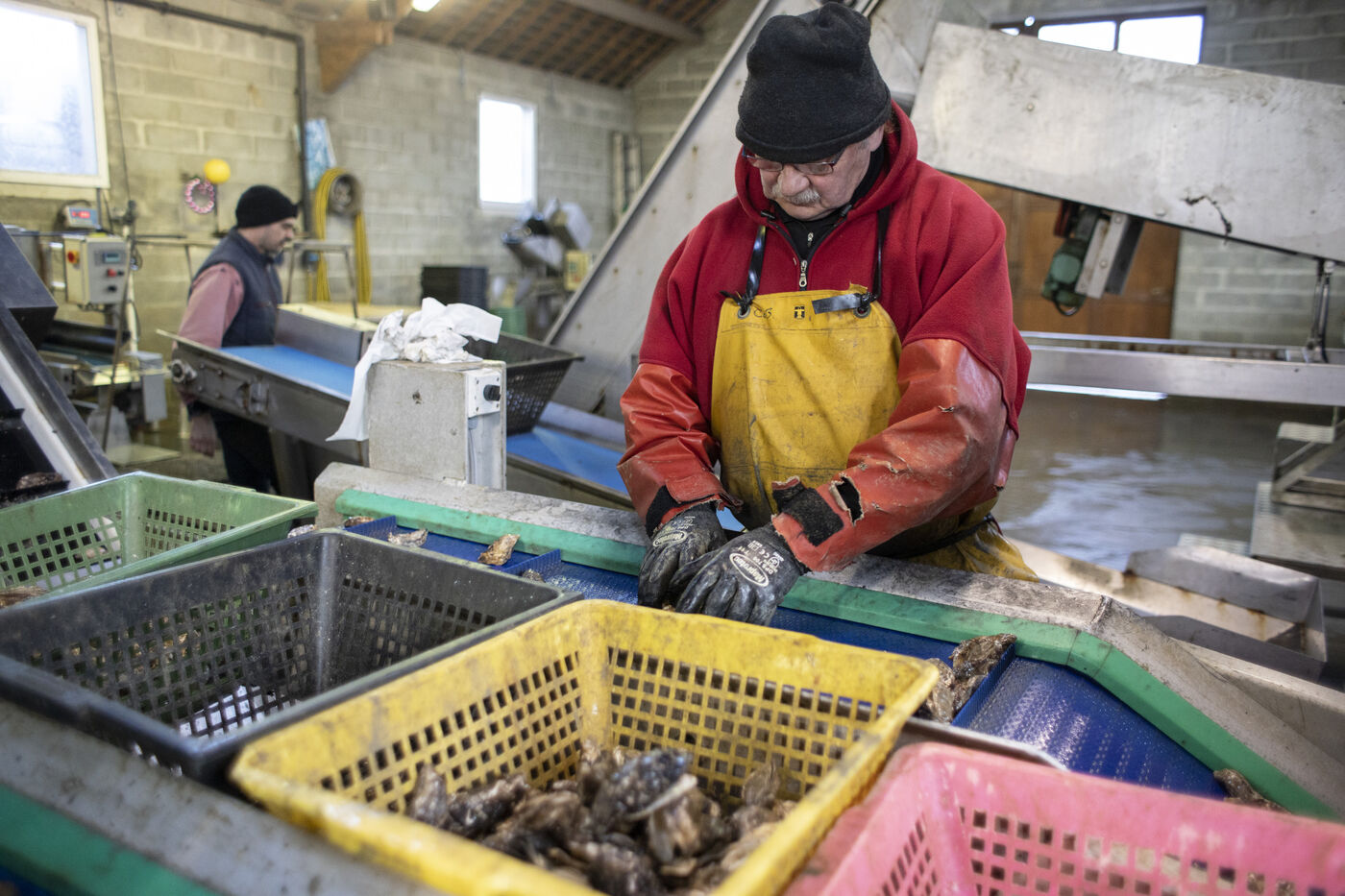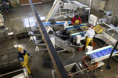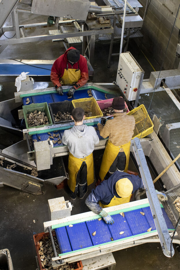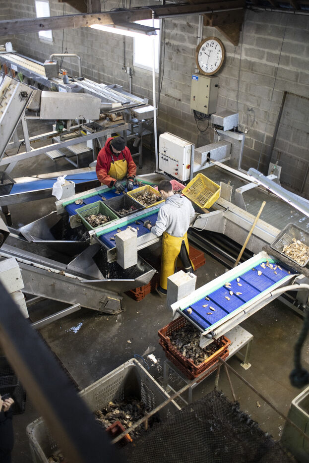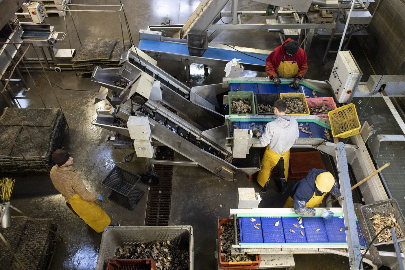 Screening oysters in the "Vergers de Normandie" warehouse.