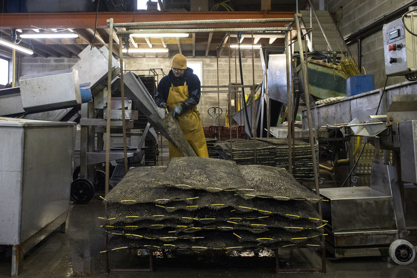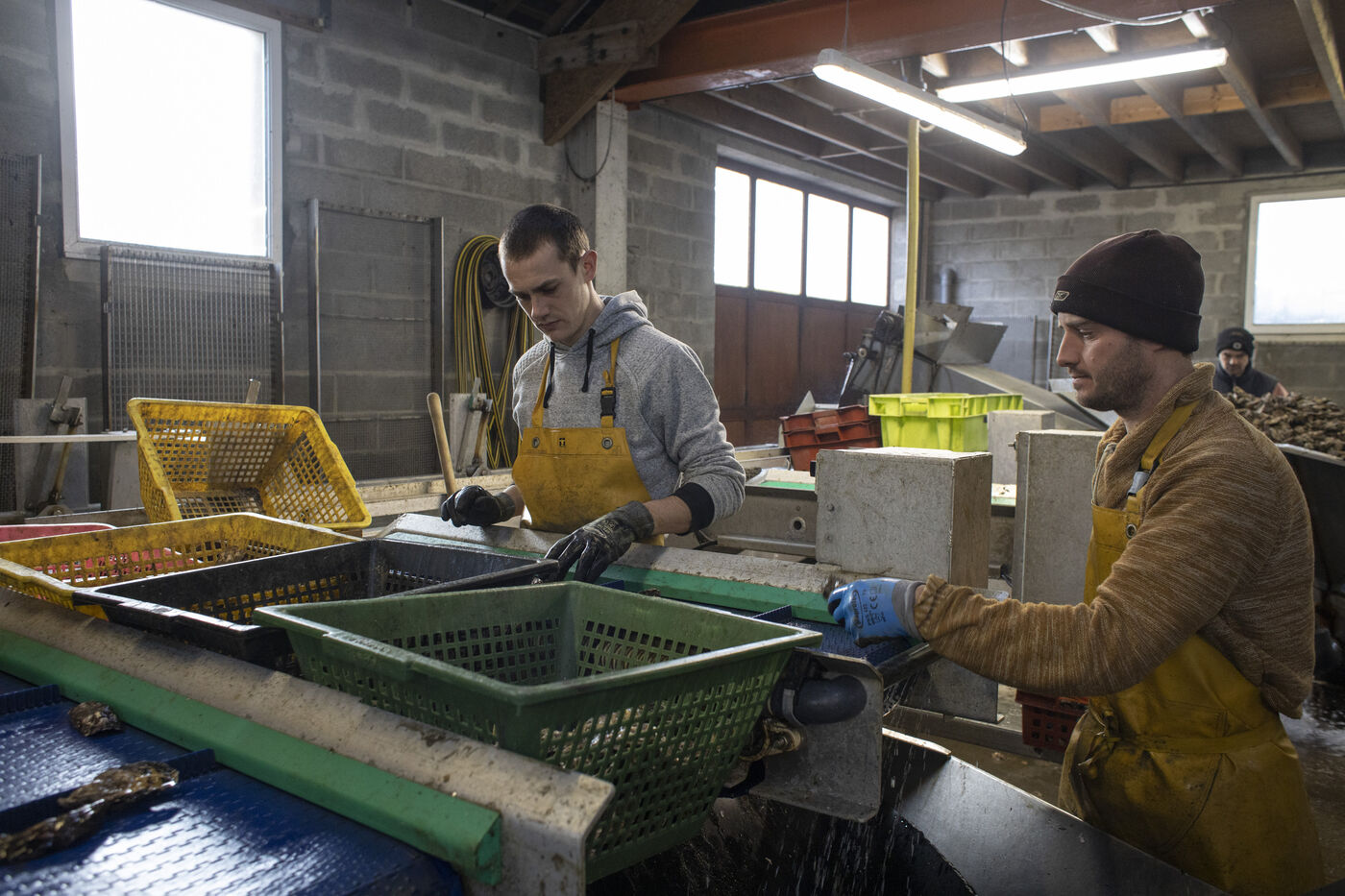 Dans l'entreprise familiale "les Vergers de Normandie", à Saint-Vaast-la-Hougue, Cyril, Max, Martin, Yohann et Gui font ce que l'on nomme le crible. Ils vont trier par taille et par poids les huîtres pour les remettre à la mer le lendemain. Il faut en général 3 à 4 ans pour qu'une huître soit de bonne taille pour être vendable. Destinés aux consommateurs français et étranger, le savoir-faire mêlé aux avancées techniques industrielles, permettent un travail rapide et précis.