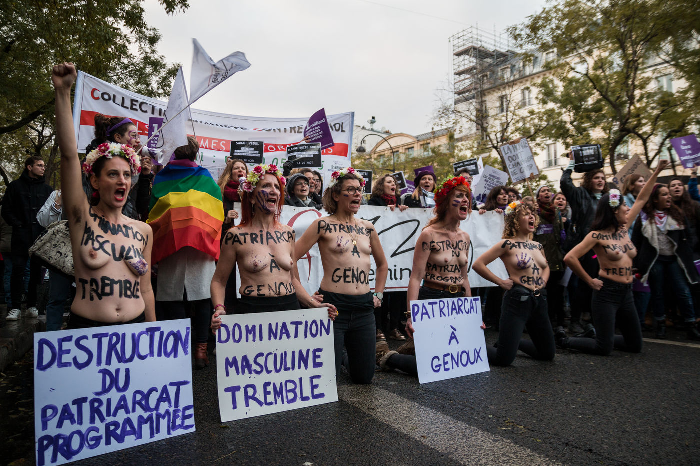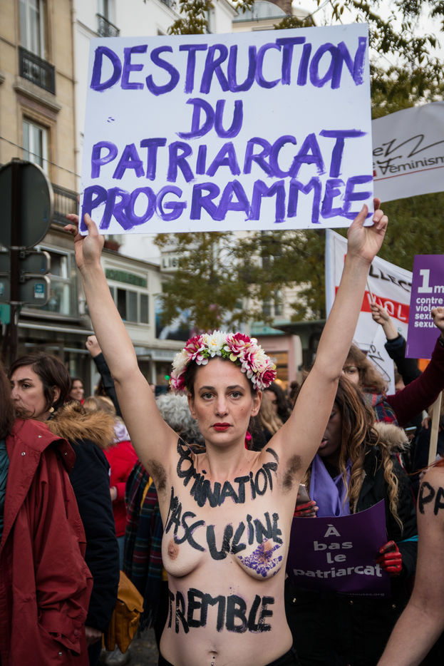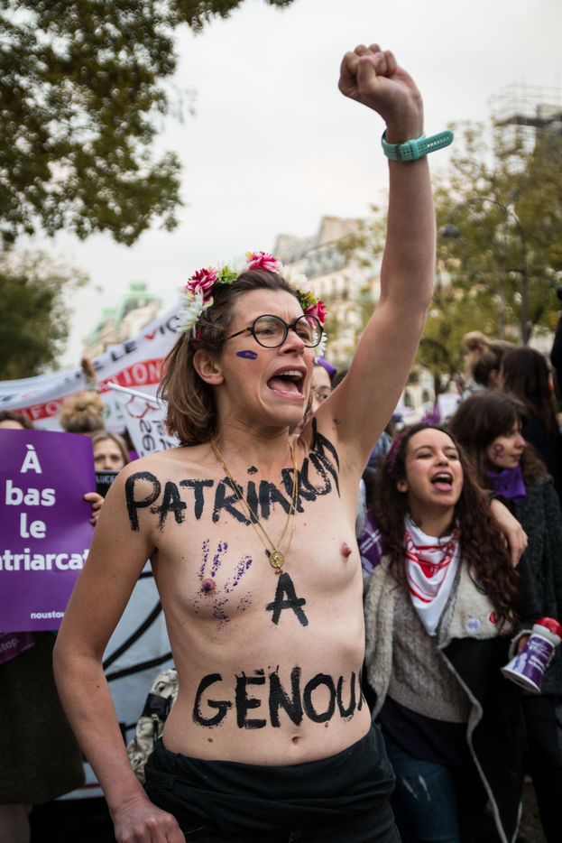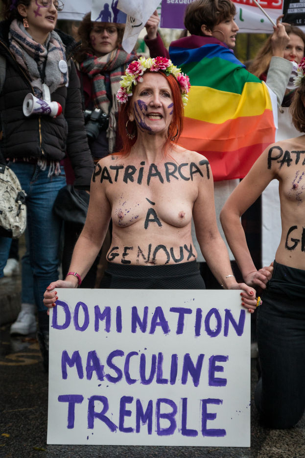 Activists from the "FEMEN" group led an action during the march in Paris against violence against women and feminicides, initiated by the association "Nous Toutes" and followed throughout France on 23 November. The demonstration brought together about 50,000 people, two days before the international day to fight violence against women and a few days before the end of the government's Grenelle on domestic violence.