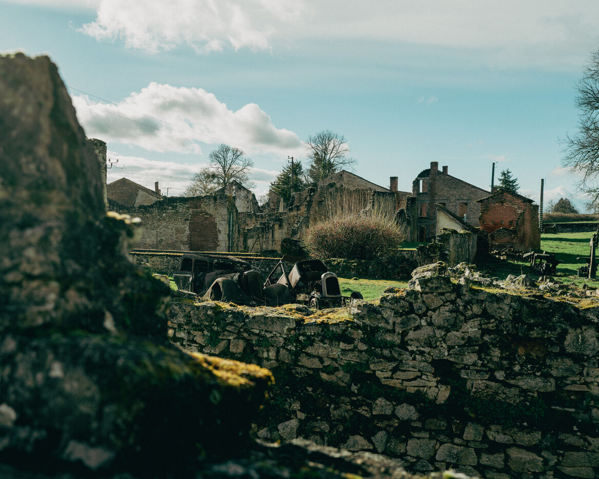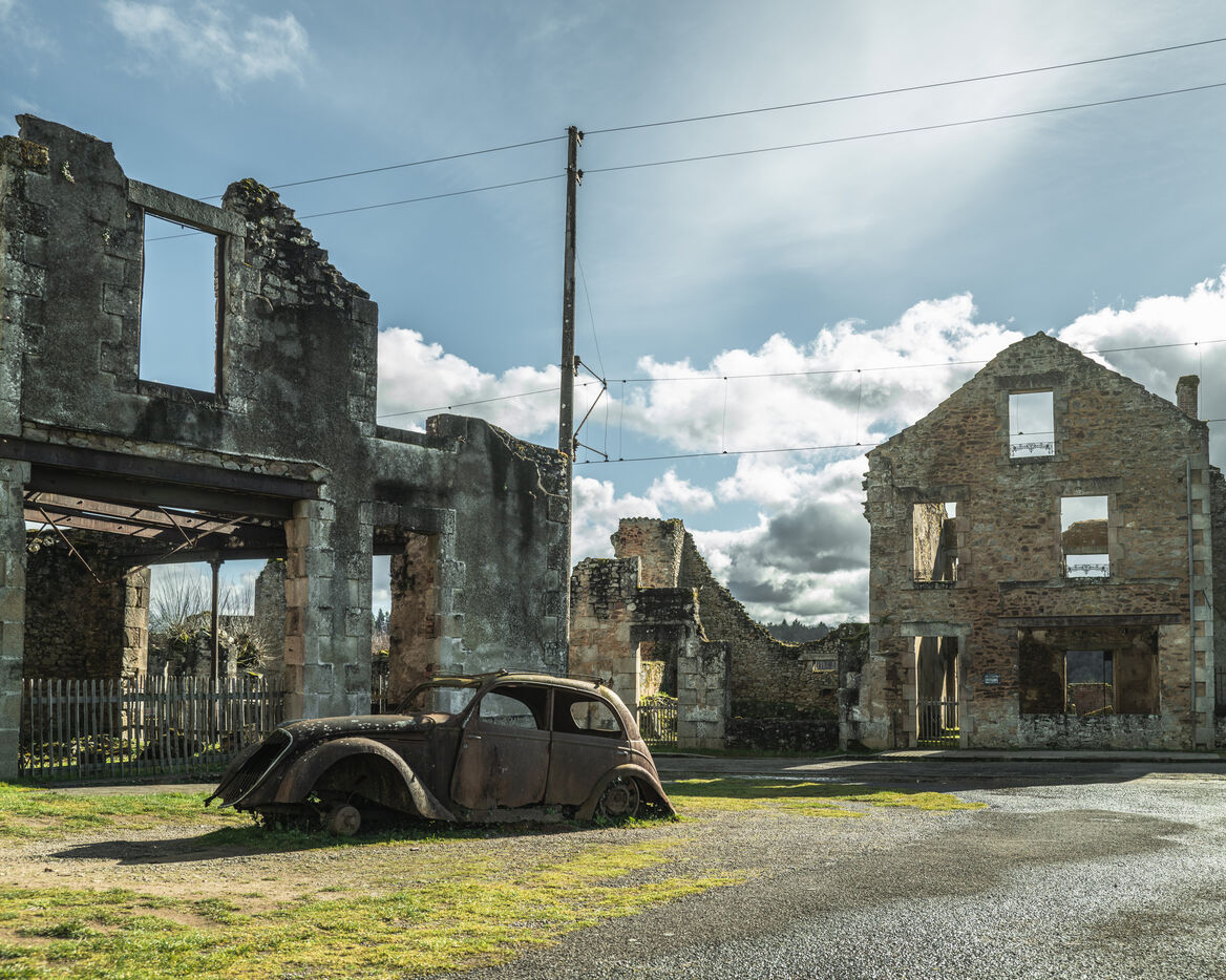 Ruines du village martyre d'Oradour-sur-Glane où a eu lieu le 10 juin 1944 le plus gros massacre de l'armée nazi durant la seconde guerre mondiale.