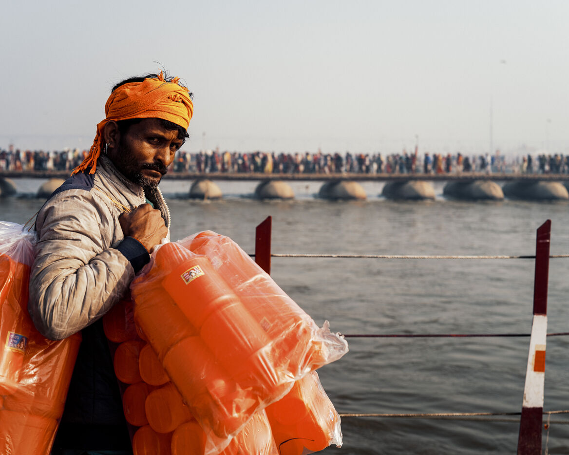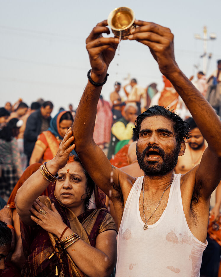 Every 144 years, the Maha Kumbh Mela transforms Prayagraj into an ephemeral city bigger than Paris, welcoming nearly 450 million pilgrims over 48 days. At the sacred confluence of the Ganges, the Yamuna and the mythical Sarasvati, the faithful come to immerse themselves in the holy waters to purify themselves and attain Moksha.
