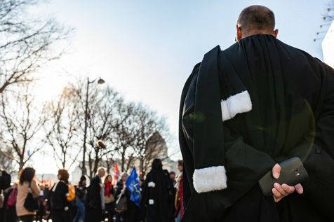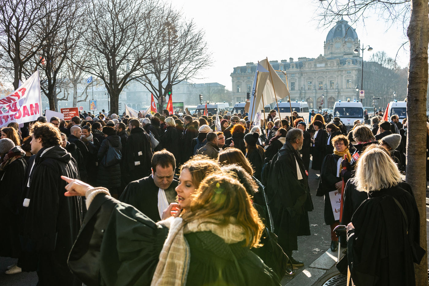 A l'appel du Barreau de Paris et de l'Ordre des avocats de Paris, un rassemblement a eu lieu place du Chatelet a Paris le 12 decembre 2018 pour protester contre cette reforme.