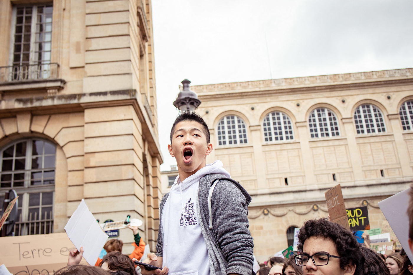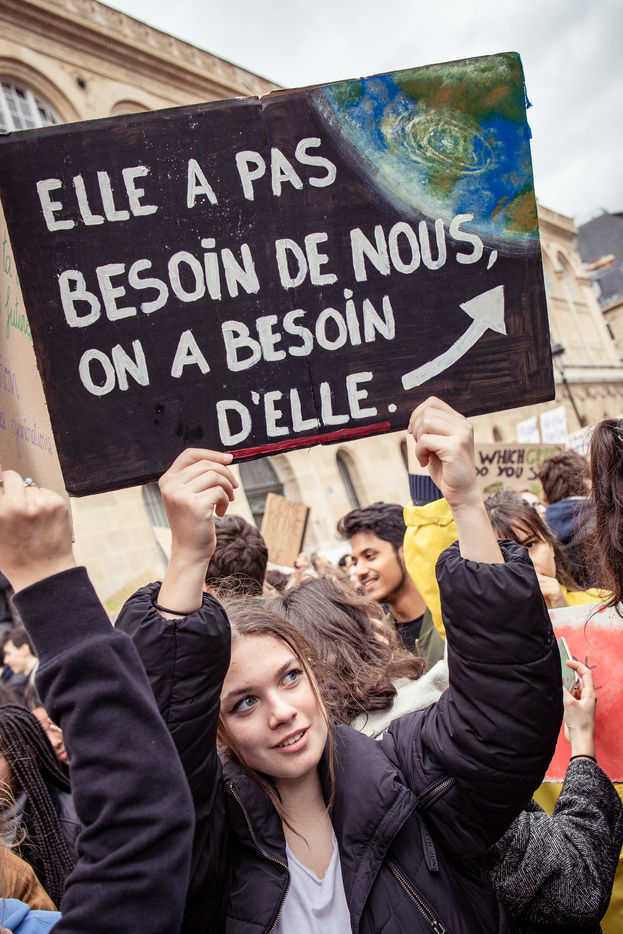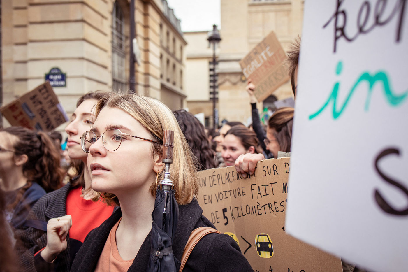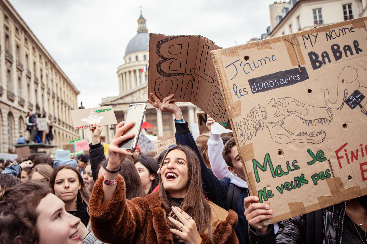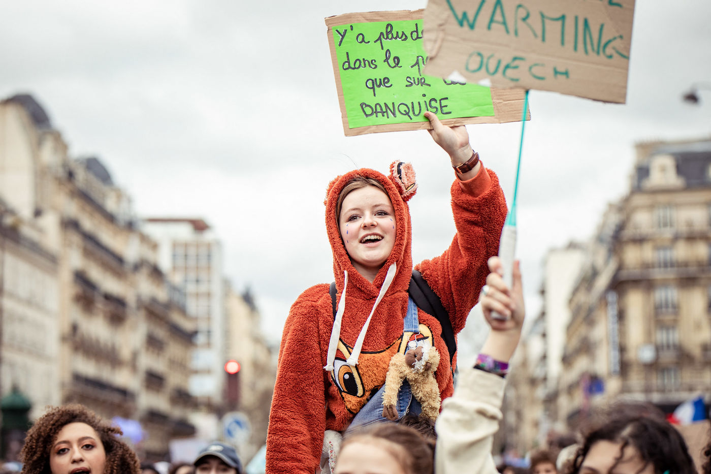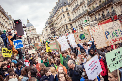 Des milliers de jeunes ont défilé pour le climat dans les rues de la capitale. Ils ont répondu à l?appel du mouvement YouthForClimate, dans le cadre de l?appel lancé par Greta Thunberg. Paris, 15 mars 2019.