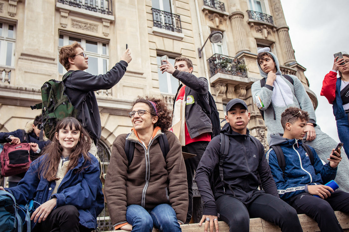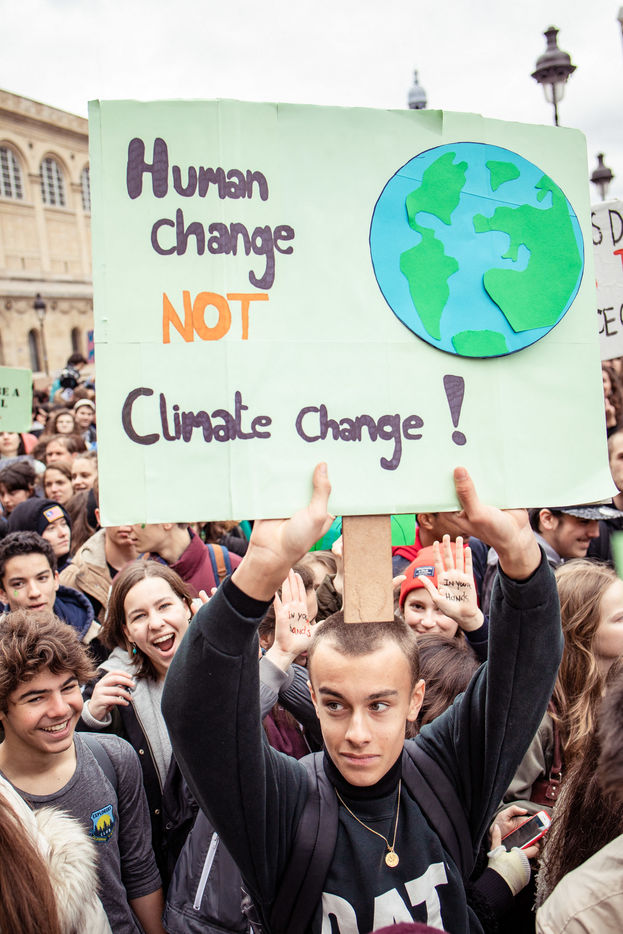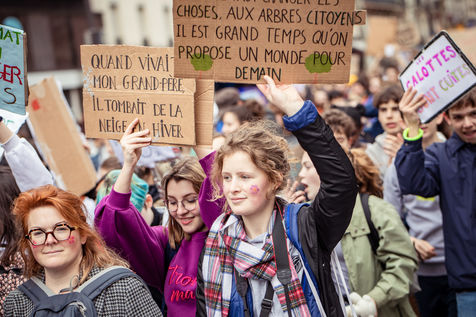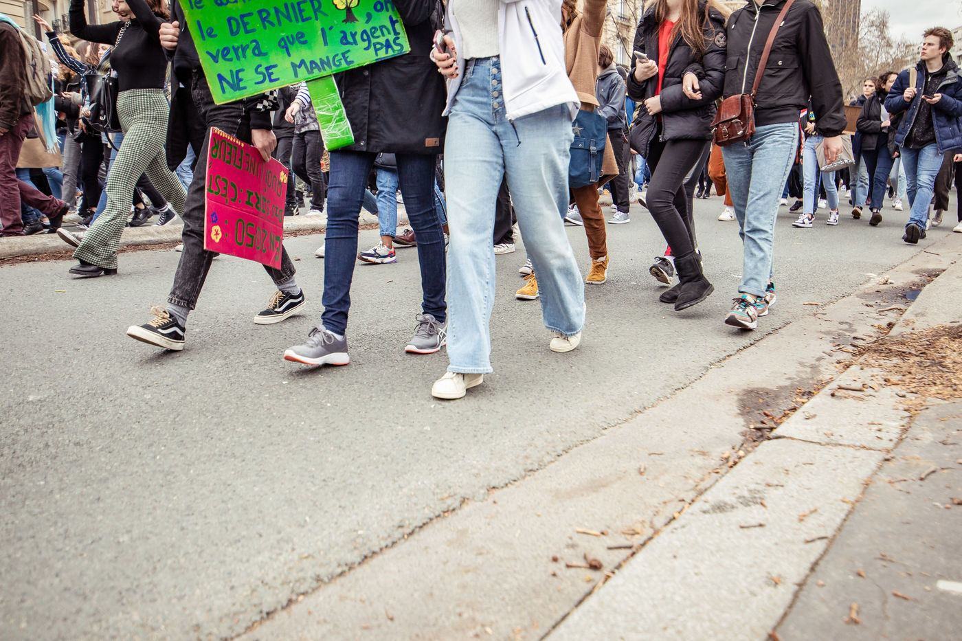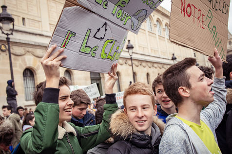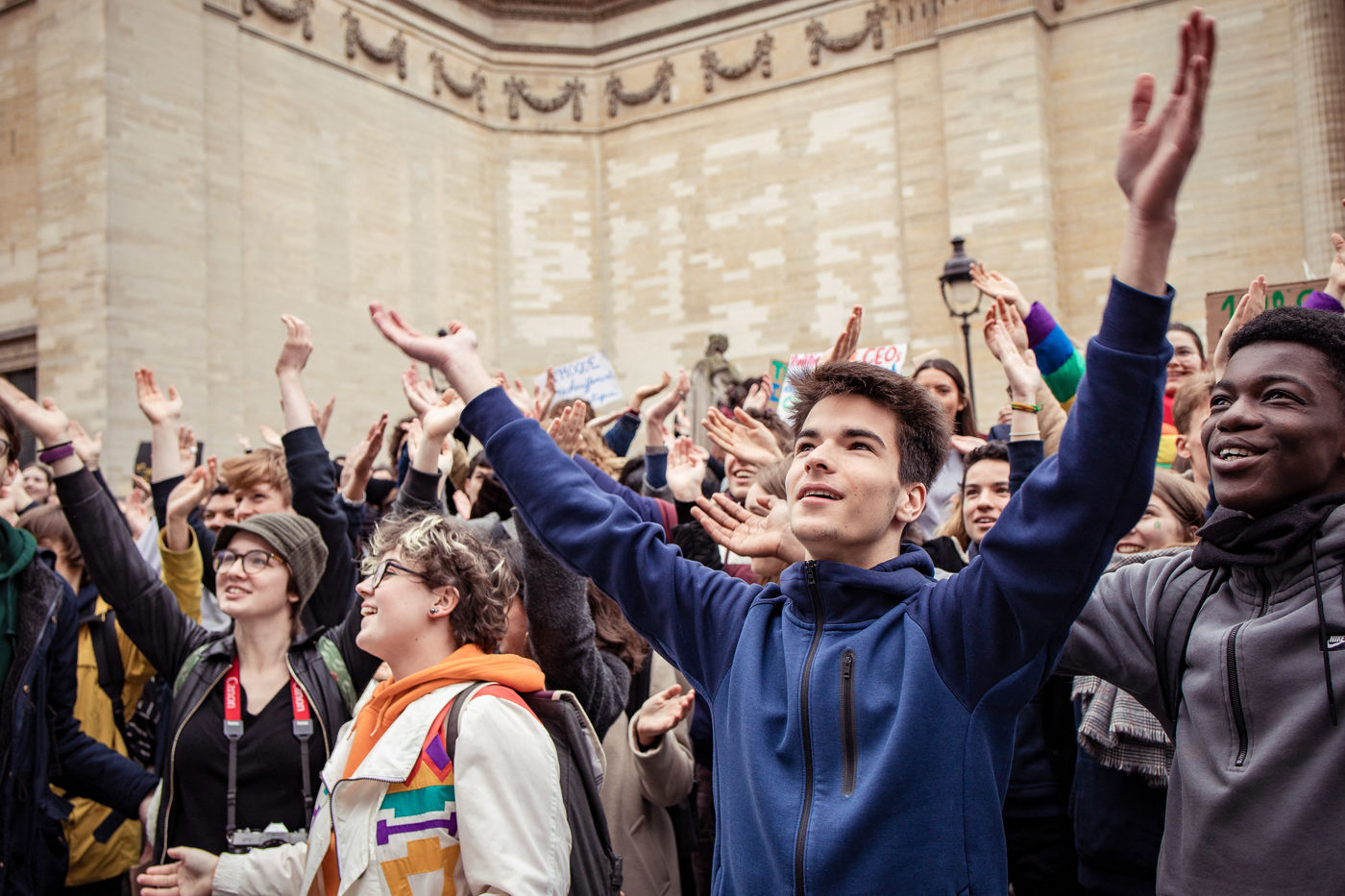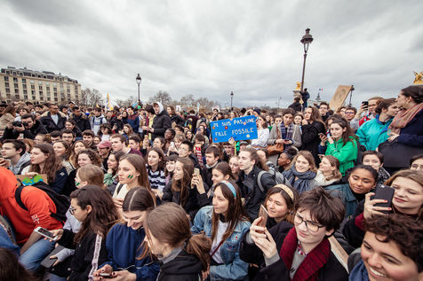 Des milliers de jeunes ont défilé pour le climat dans les rues de la capitale. Ils ont répondu à l?appel du mouvement YouthForClimate, dans le cadre de l?appel lancé par Greta Thunberg. Paris, 15 mars 2019.