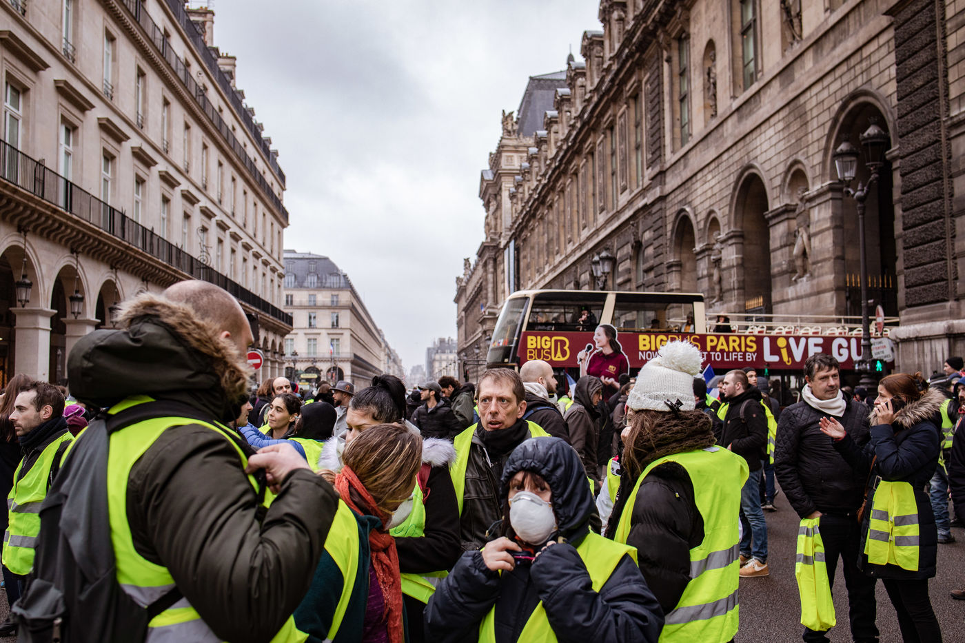 On Saturday, December 1, 2018, act 3 of the Gilets Jaunes in Paris was marked by violent clashes with the police. The Tuileries garden serves as a battlefield and everything becomes projectile material. Later on, the scenes of violence spread, particularly towards Place Vendôme where a police vehicle was set on fire.