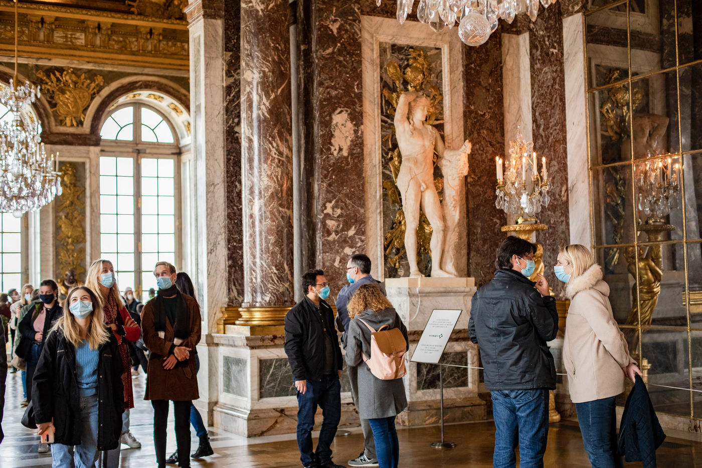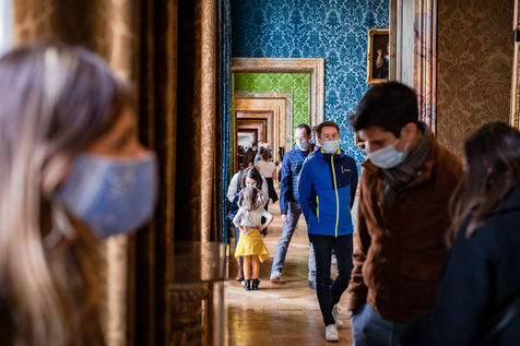 Illustration of a visit to the Palace of Versailles on Saturday, October 17, 2020, 2 weeks before reconfinement. Visitors are few and masked but everything seems normal.