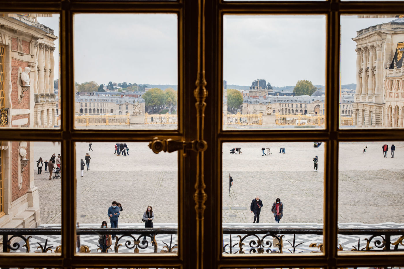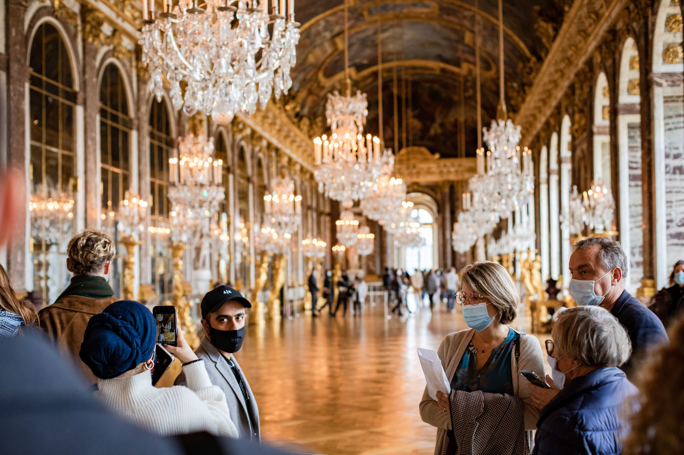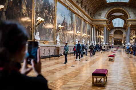 Illustration d une visite au Chateau de Versailles le samedi 17 octobre 2020, 2 semaines avant le reconfinement. Les visiteurs sont peu nombreux et masques mais tout semble normal.