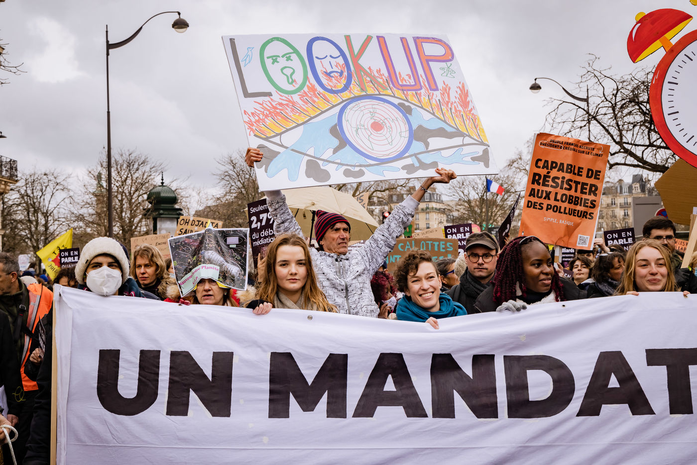 Marche pour le climat et la justice sociale a Paris le 12 mars 2022 avec pour mot d ordre "Look Up" en reference au film "Don t look up" pour faire emerger dans la campagne presidentielle les sujets ecologiques.