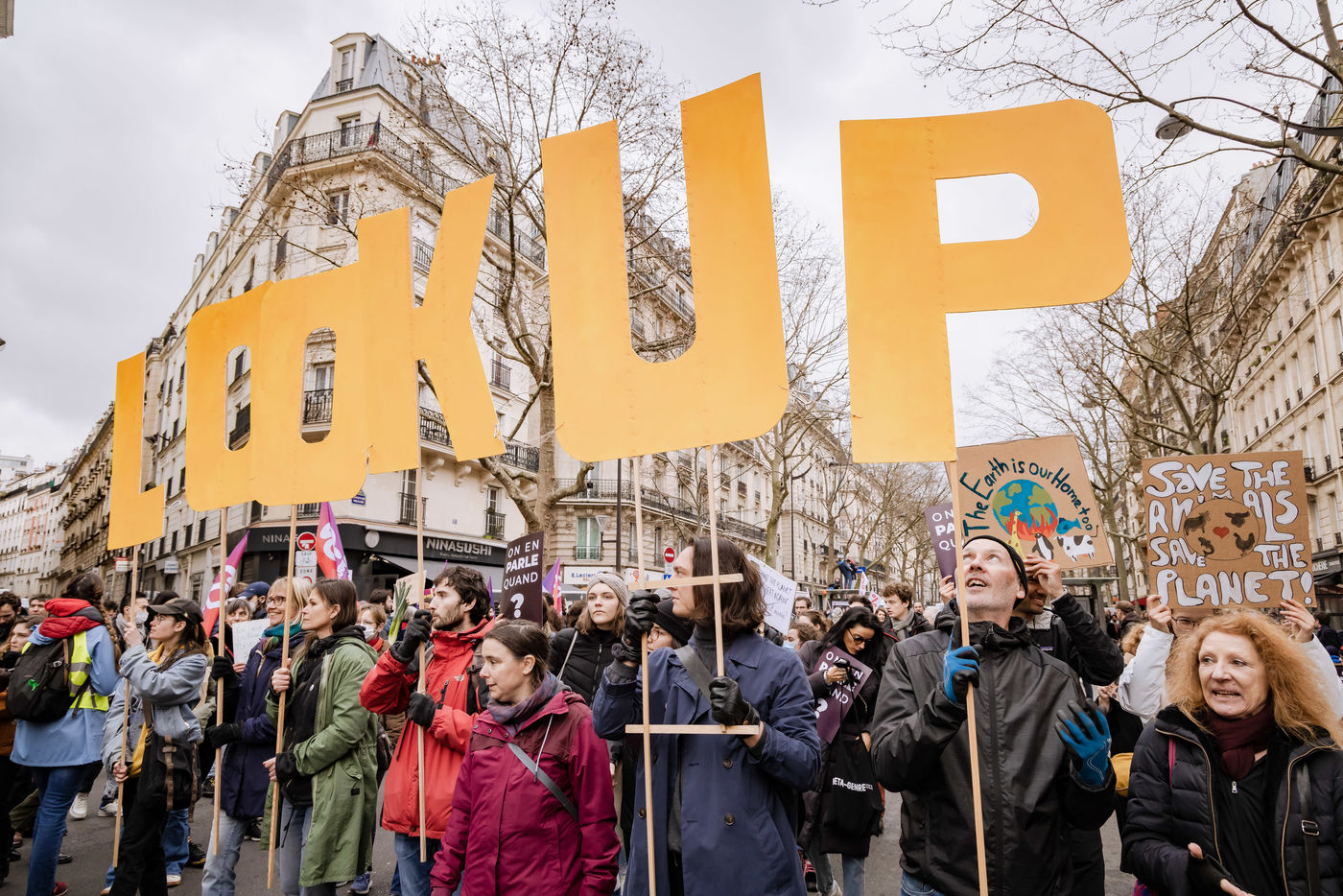 March for the climate and social justice in Paris on March 12, 2022 with the slogan "Look Up" in reference to the film "Don't look up" to bring ecological issues into the presidential campaign.