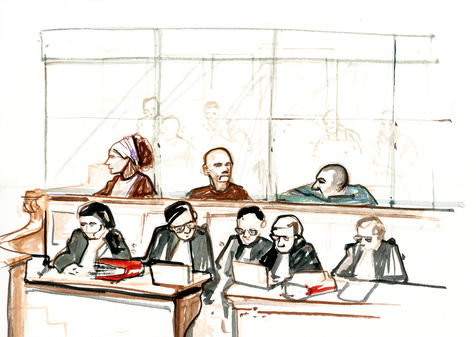 12 mai 2014 - Paris - Palais de justice - Cour d'assise - Proces de 3 militants de l'ETA du pays Basque espagnol , juges pour des faits entre 2005 et 2008. Ainhona Ozaeta Mendikute aurai ete tresorriere de l'ETA et supervisee l'extorsion de fonds. Arretee en 2008 avec Igor Superviola et Jon Salaberria -