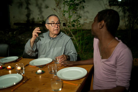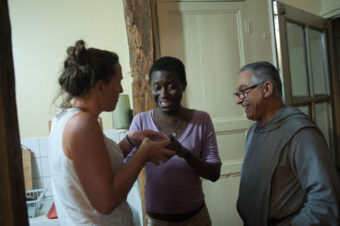 27 aout 2016. Ecuelles ( 77 ). Le pe?re Jean-philippe ( Jean-philippe Chauveau ), Dans la maison Magdalena. La maison sera inaugure? le 3 septembre. Le lieu a? pour vocation d'acceuillir des prostitue?s du bois de Boulogne, dans le but de las aider a? sortir de la prostitution. Autour du pe?re Jean-Philippe quelques uns des be?ne?voles comme Aurore ou Manu issus d'horizons tre?s divers. Ce jour Charme une des prostitue?e du bois est attendue pour passer le week-end.