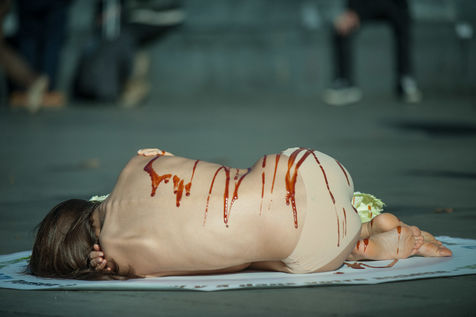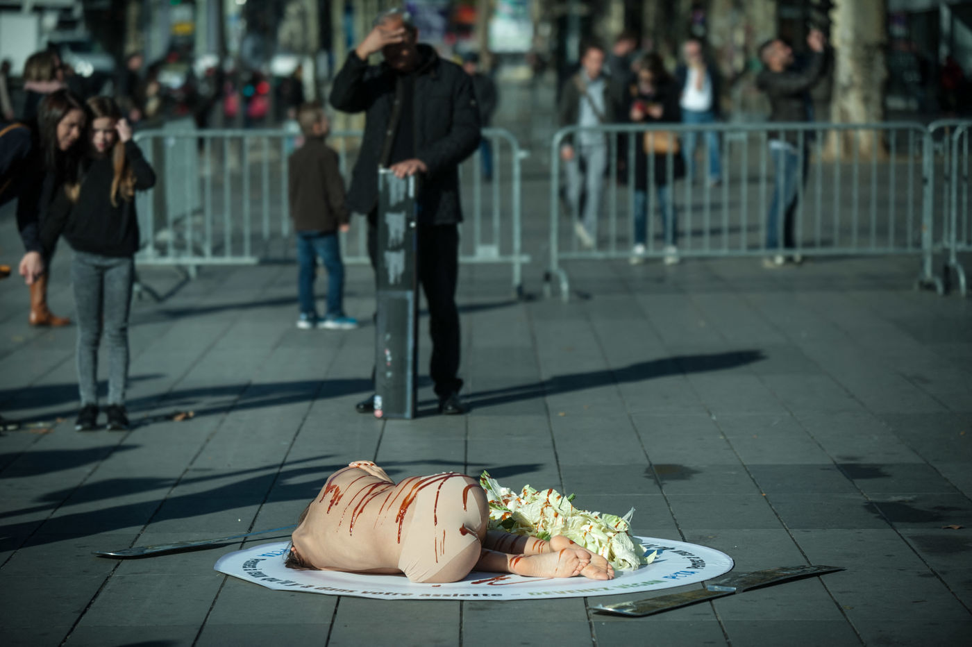 In October 31st, 2016 Paris. Action of the association PETA against the consomation of meat, animal products and the breeding for the consomation.