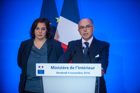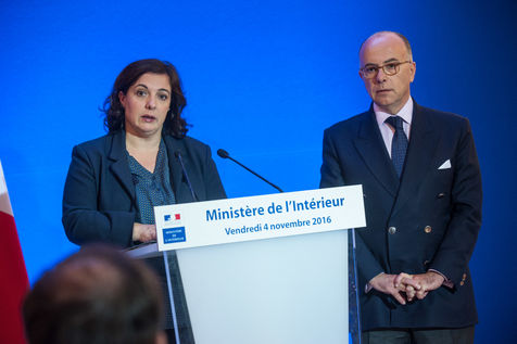 In November 4th, 2016 Paris. Ministry of internal affairs. Common press conference of Emmanuelle Cosse and Bernard Cazeneuve