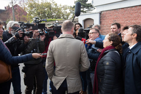 Dimanche matin, depuis une petite heure, je me trouve sur le site de l'école communale d'Hénin-Beaumont à couvrir les élections présidentielles avec des dizaines d'autres reporters. Je me suis senti repérer par des agents en civil avec oreillette et/ou talkie (service de sécurité, police...), mais n'ayant rien à me reprocher et désireux de faire mon travail je n'y prête pas attention. Puis Steeve Briois, maire de la commune et député européen frontiste, apparait devant l'école, fait un tour puis repart dans les rues adjacentes. Comme à l?accoutumée, il est accompagné d'une horde de journalistes qui le suit pour réaliser des images. Je ne fais que suivre le mouvement.
