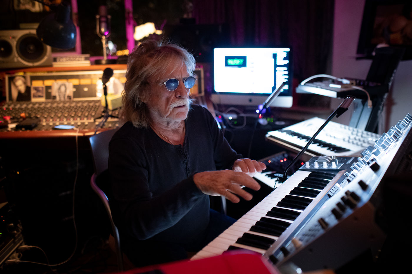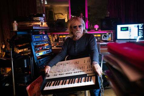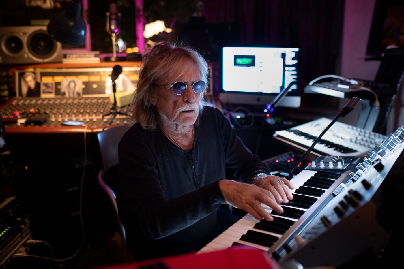 Le chanteur francais Christophe dans son studio, appartement a Paris, boulevard du Montparnasse en Octobre 2017
