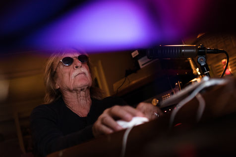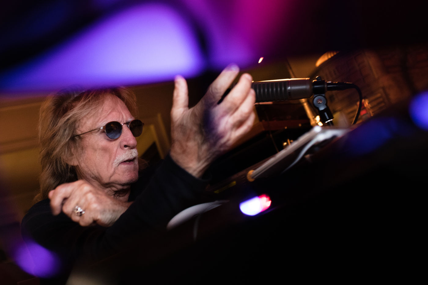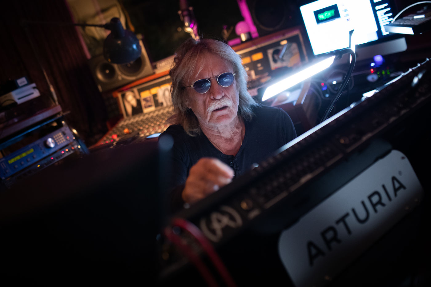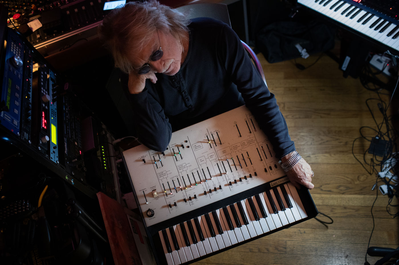 Le chanteur francais Christophe dans son studio, appartement a Paris, boulevard du Montparnasse en Octobre 2017