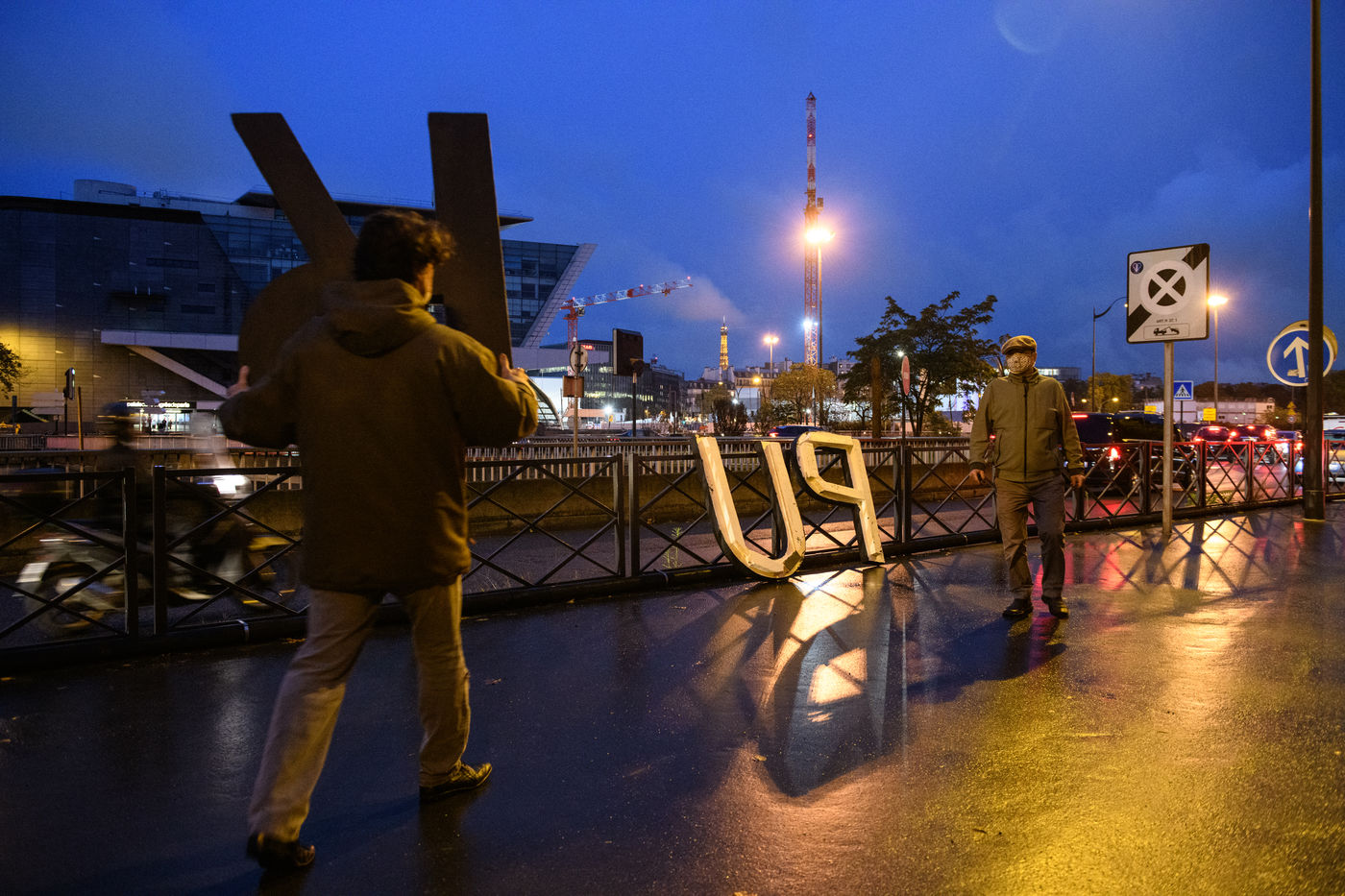 Installation d'une oeuvre d'art d'Olivier Urman, Nuit Blanche 2021
