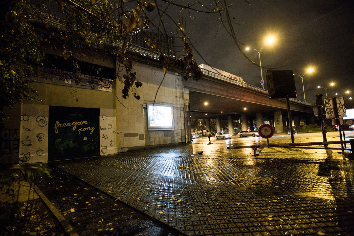 Le premier restaurant Freegan à Paris est hébergé dans le squat parisien le Péripate. Situé porte de la Villette le Péripate a été le repaire de soirées de musiques électoniques et afters party pendant plusieurs mois. Le principe du Freegan Pony: récupérer des invendus du marché de Rungis, cuisiner des repas végétarien et les servir aux clients du restaurant le soir même.