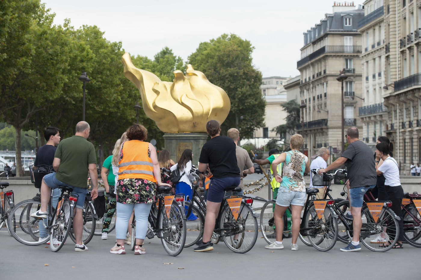 Built in 1987, the monument is constructed in gray and black marble. It is a life-size, gilded copper replica of the flame of Bartholdi's famous Statue of Liberty, standing at the entrance to New York City. This gift, offered by the International Herald Tribune, symbolizes the friendship between the French and American peoples.