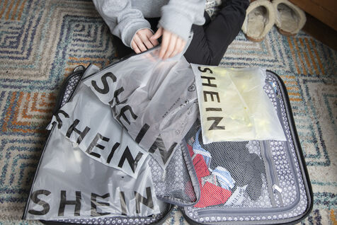 Paris, France - 2025/05/28 : A bag containing clothes ordered from the e-commerce platform SHEIN, delivered to a private customer. The Chinese brand, emblematic of fast fashion, ships thousands of parcels worldwide every day. Photo by Joao Luiz Bulcao / Hans Lucas.