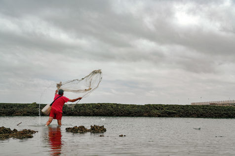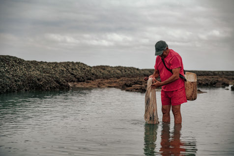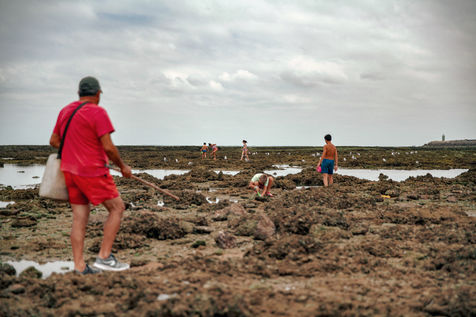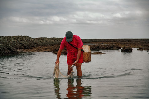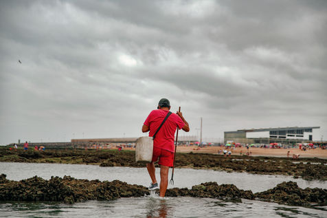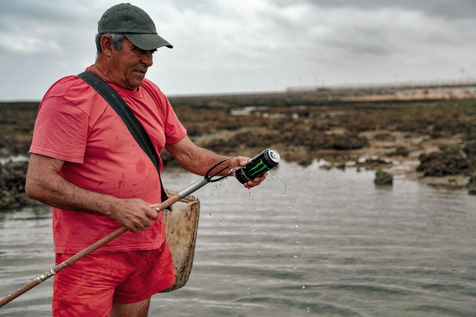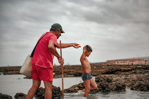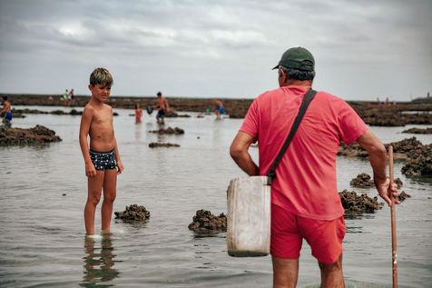 Let's go meet one of these fishermen, Manuel Ruiz Tirado, known as "El Lele", a native of Chipiona and a former deep-sea fisherman. For him, it is less important to fill his net with fish and crabs than to make vacationers aware of the fragility of these places. To children, he recommends releasing the small crabs that they catch so that they grow up. To adults, he explains how much the sunscreen of their skins acidifies the stagnant water of the sea at low tide thus unbalancing a fragile ecosystem. He demands that soda cans and cigarette butts not be thrown on the sand. He explains that the dirty diapers of babies do not really belong in the ocean. In short, he speaks to us of common sense. The good sense of the unspoken rules uniting us to nature; a good sense yet so mysteriously difficult to assimilate...