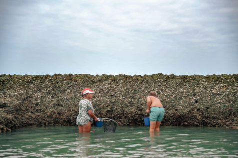 The parks were built with large stones at their base and the faults were filled with rubble. The oysters, the barnacles and the limes settling in the crevices of the rocks act as natural cement.