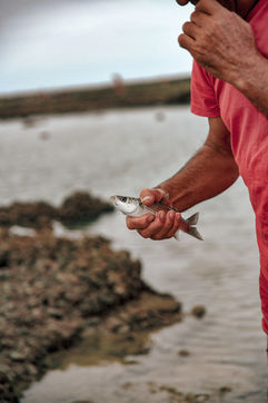 The principle of fishing in the corral is simple and tuned to the rhythm of the tides: the rising sea covers the corrals, allowing fish and other crustaceans to cross the wall and when the sea recedes, it will leave them trapped in a water from a depth of one meter maximum. It is this moment that fishermen expect to come and pick these fruits of the sea.