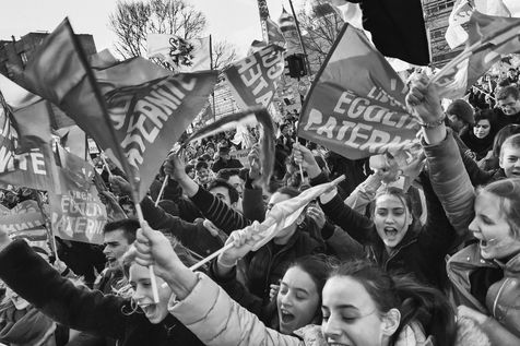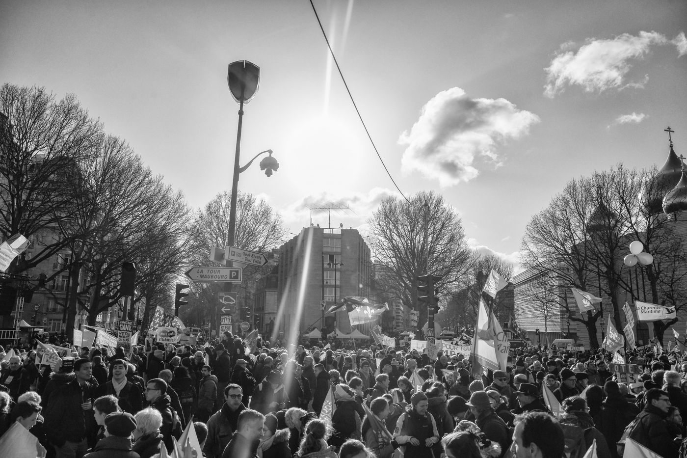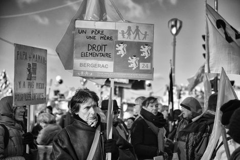 Un collectif d associations, dont la Manif pour tous, organise une manifestation ce dimanche 19 janvier a Paris pour demander le retrait du projet de loi de bioethique, examine a partir de mardi par le Senat. Environ 26 000 personnes ont assistes a la manifestation soit trois fois moins que lors de la manifestation en octobre 2019. Paris, France. 19 janvier 2020.