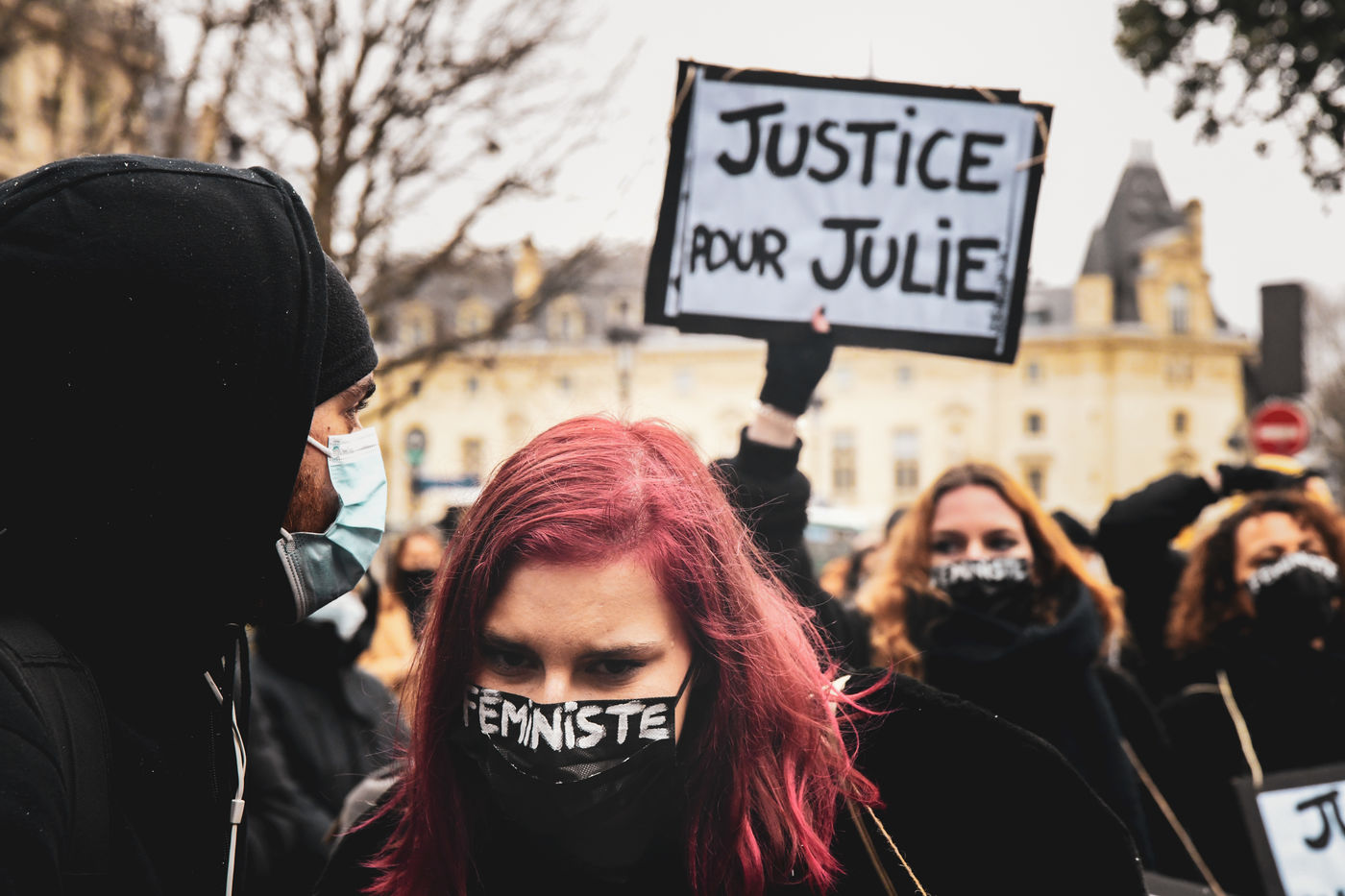 This rally, a few streets from the Courthouse, was organized before the examination on Wednesday by the Court of Cassation of the appeal of Julie (assumed name), who asks that her alleged attackers be tried for rape. Paris, February 7, 2021.