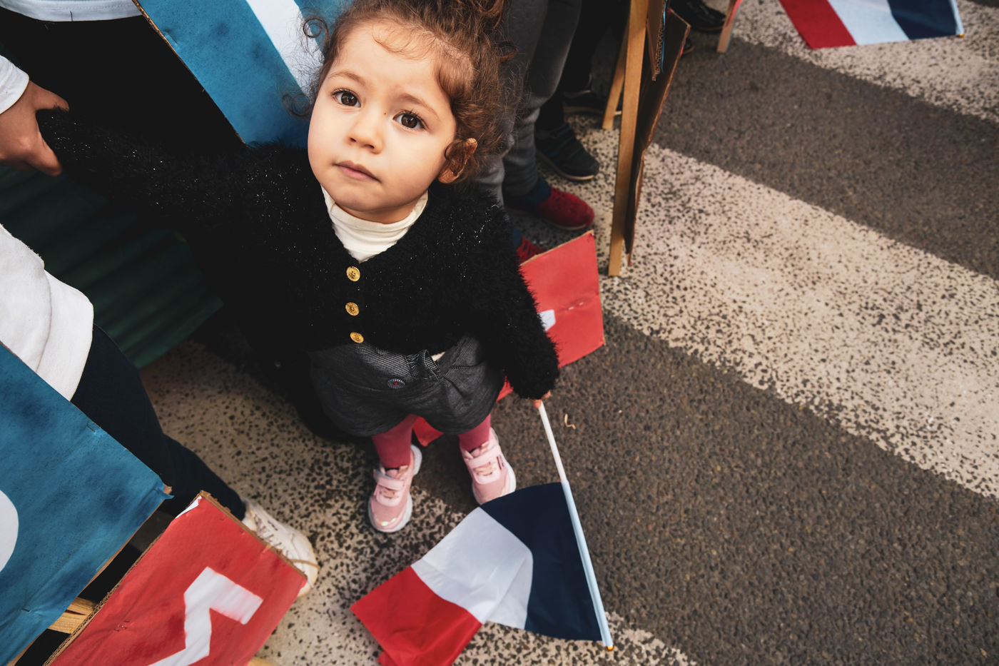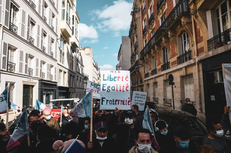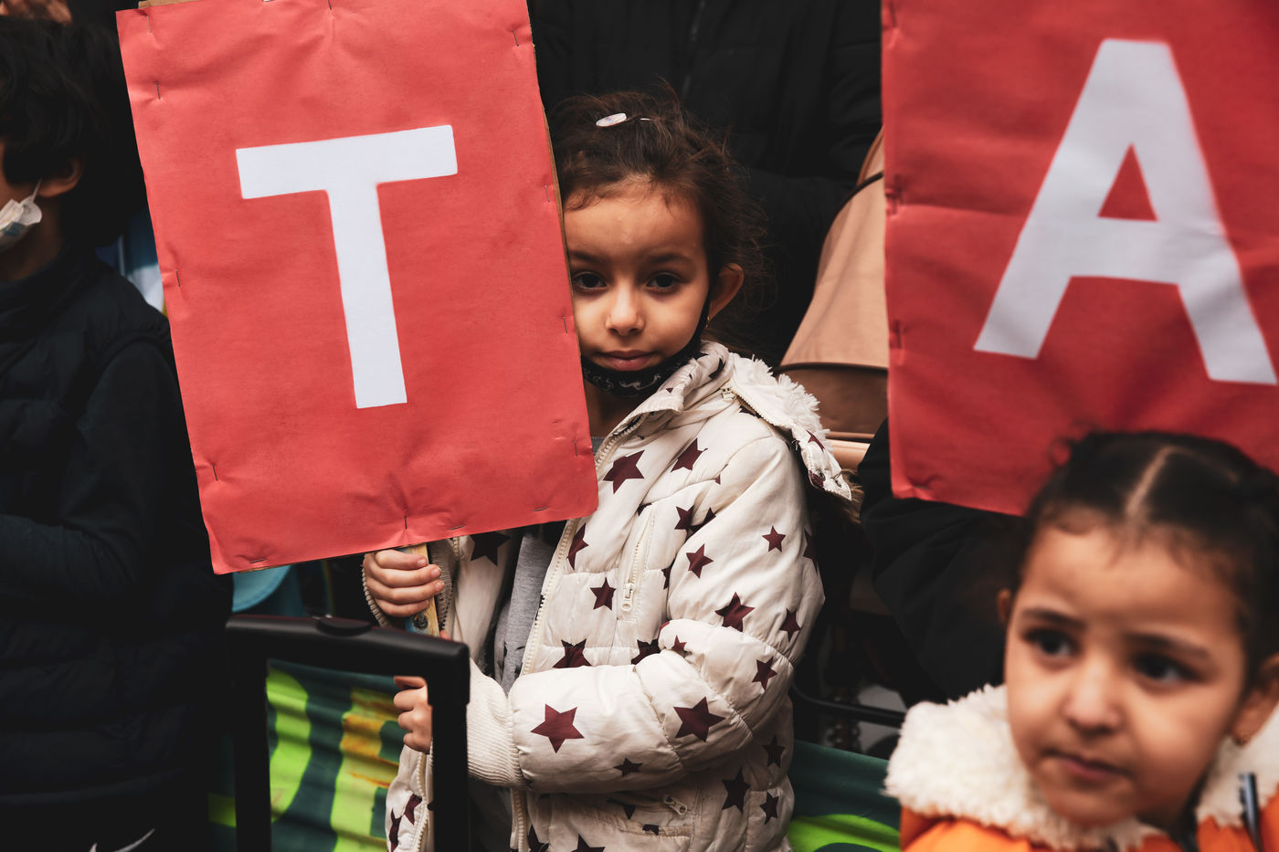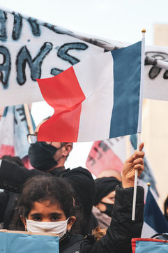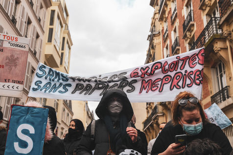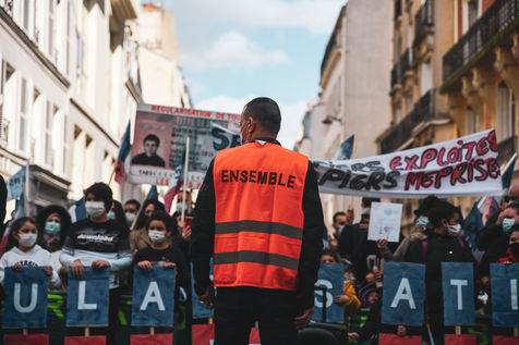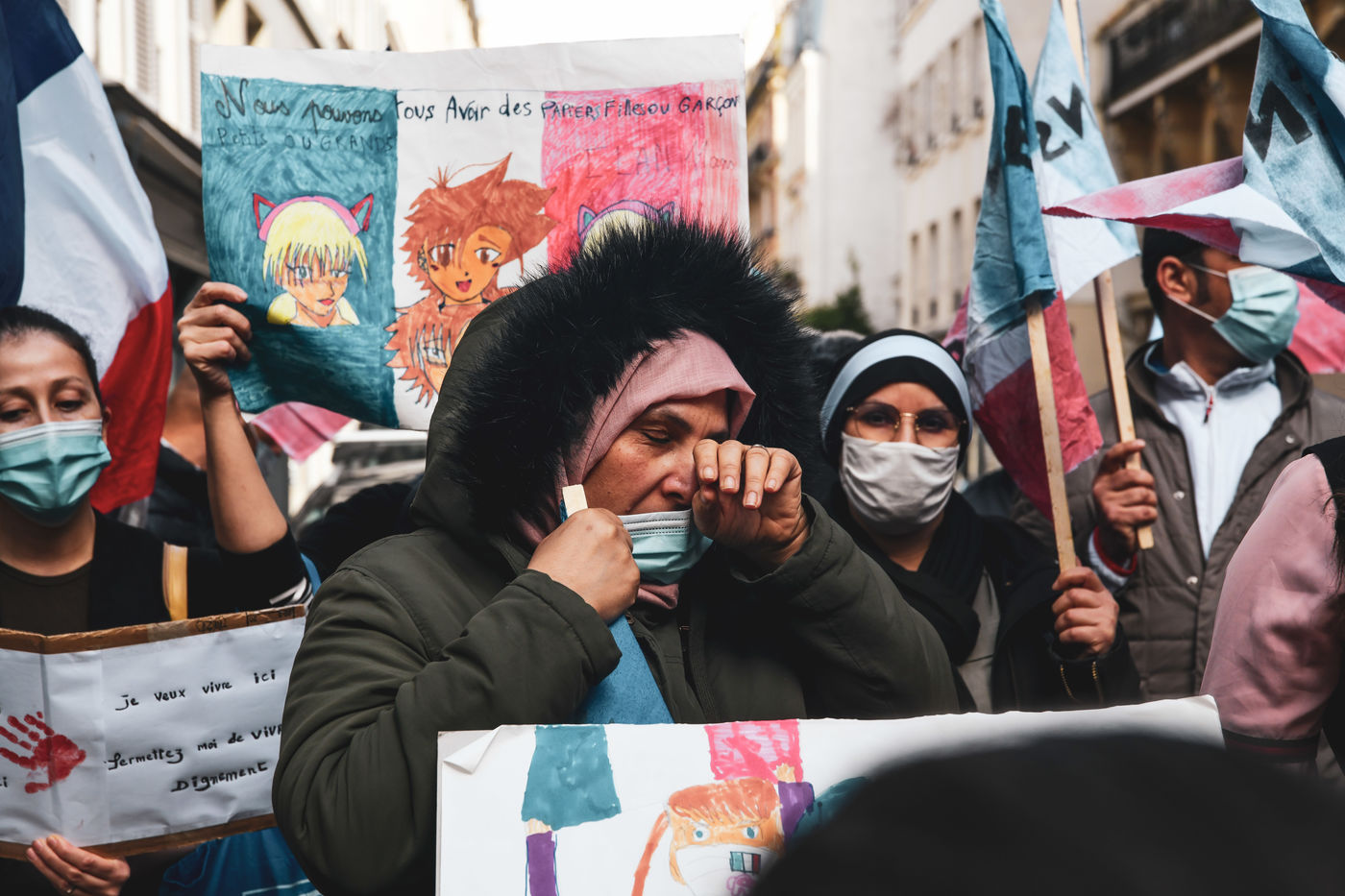 Gathering at the doors of the Ministry of Education at the call of the association Ensemble to raise awareness and demand the regularization of undocumented families with children in school and isolated minors. Paris, France. February 23, 2021.