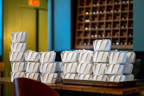 Durant la période de confinement et la crise sanitaire du COVID-19, à l'initiative de l'AP-HP, de Guillaume Gomez, chef des cuisines de l'Elysée et de Stéphane Méjanès, journaliste culinaire, les chefs cuisinent pour les soignants. L'opération est coordonnée bénévolement par la société TipToque, spécialisée dans la livraison de repas aux entreprises. Les produits bruts sont gracieusement offerts par le Marché de Rungis, ainsi que les grossistes Avigros, METRO et Transgourmet. Deuxième jour de l'opération dans les cuisines du restaurant de Caroline et Gauthier Moncel, Les Résidents, rue de Levis, dans le 17ème arrondissement de Paris.
