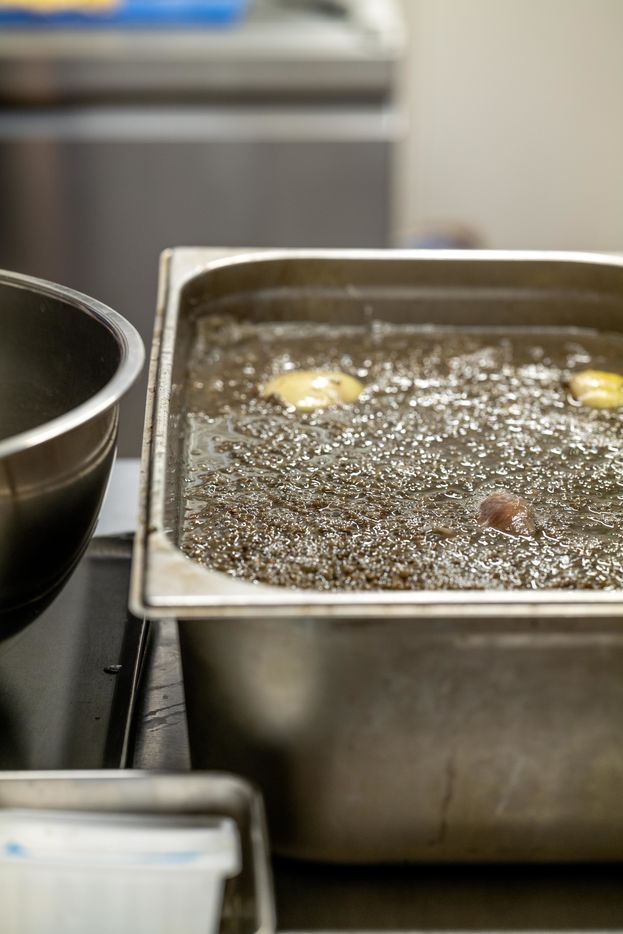 During the period of confinement and the health crisis at COVID-19, at the initiative of the AP-HP, Guillaume Gomez, chef of the Elysée kitchens and Stéphane Méjanès, culinary journalist, the chefs cooked for the caregivers. The operation is coordinated on a voluntary basis by the company TipToque, which specializes in delivering meals to businesses. The raw products are donated by Rungis Market, as well as the wholesalers Avigros, METRO and Transgourmet. Meal preparation in the L'Agapé restaurant, Paris.